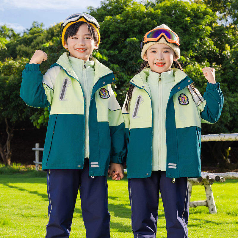 新款厂家幼儿园园服秋冬装新冲锋衣三件套小学生校服班服套装儿童