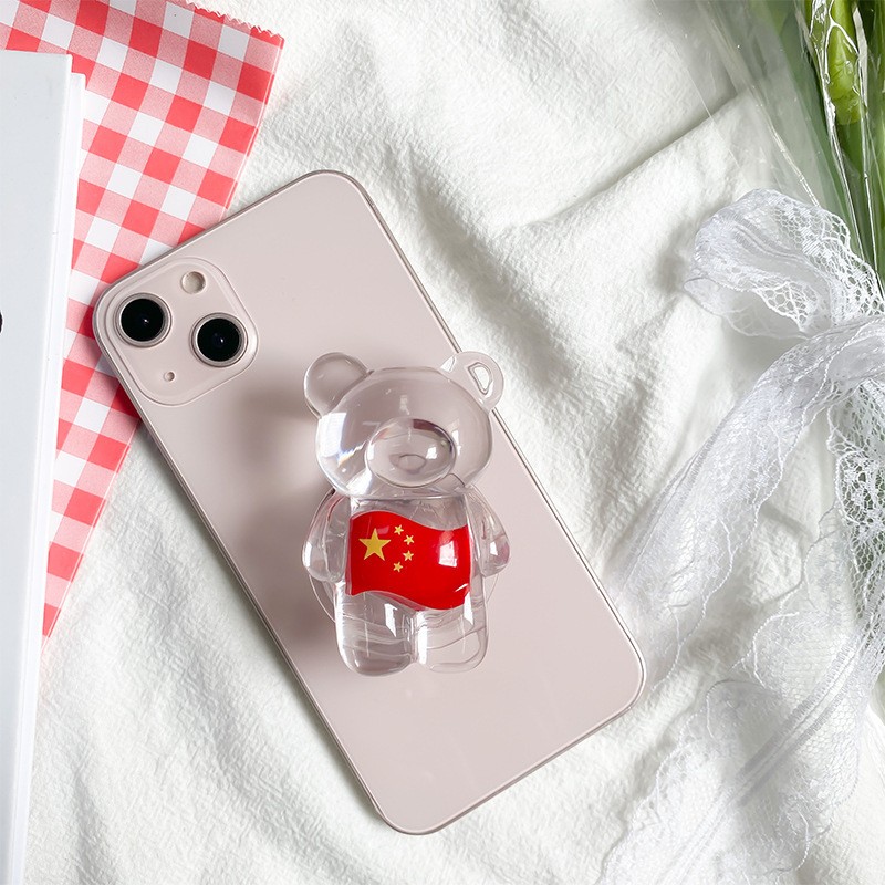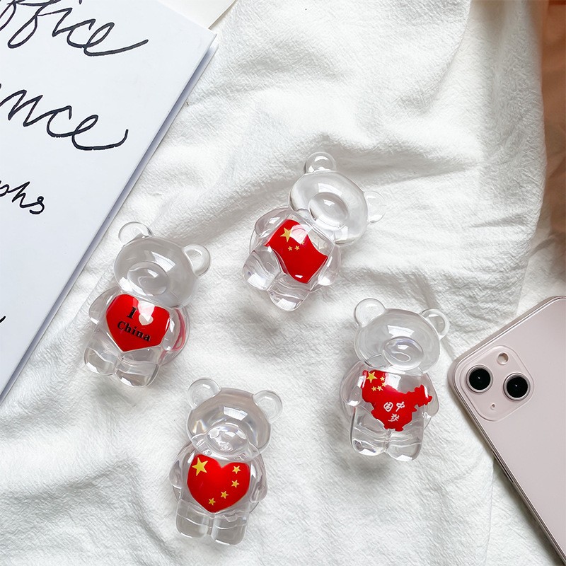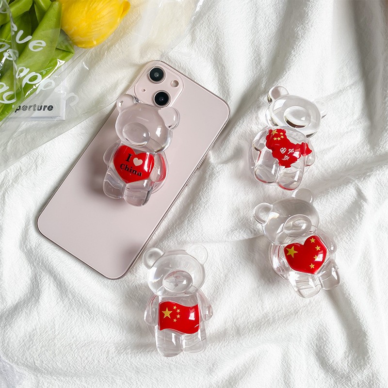 手机支架透明小熊爱国心背贴气囊国潮小众桌面支架创意可爱可伸缩