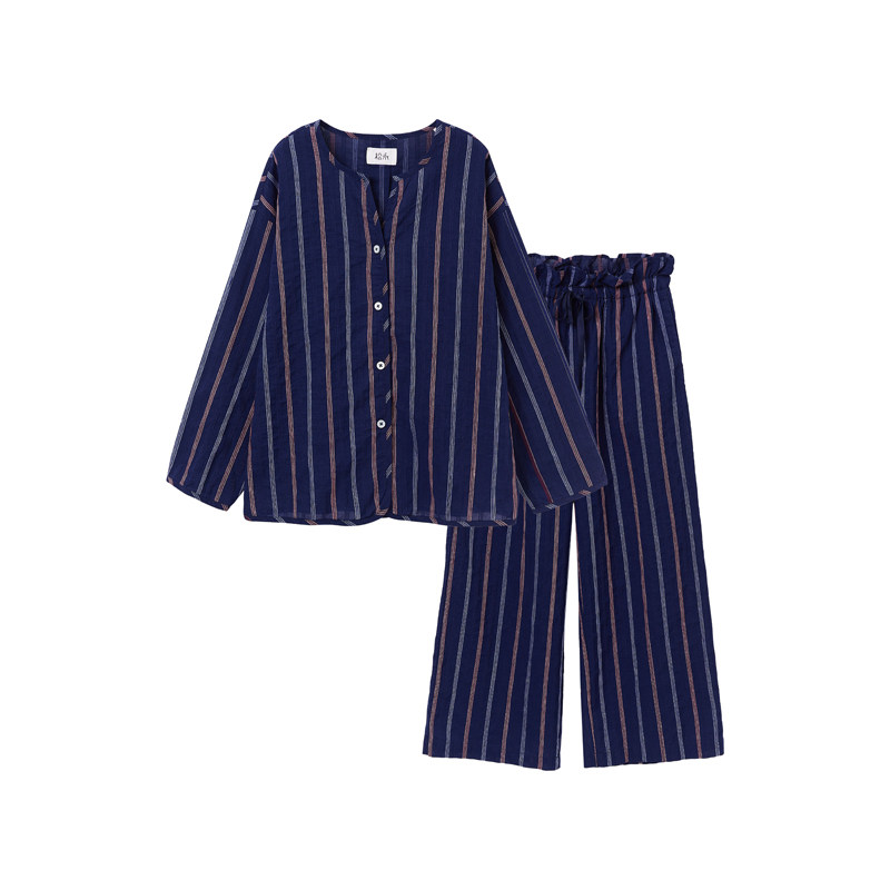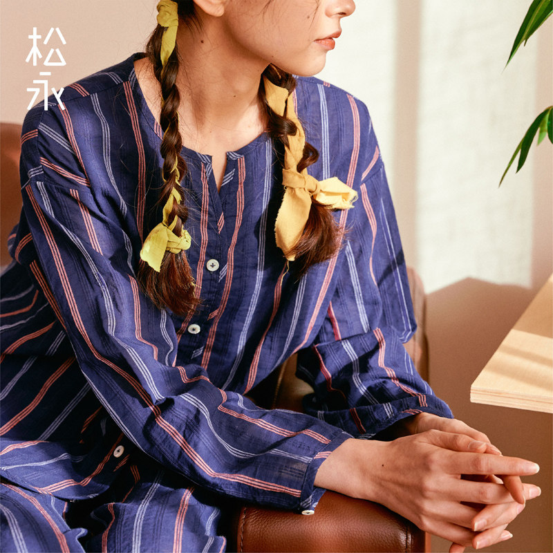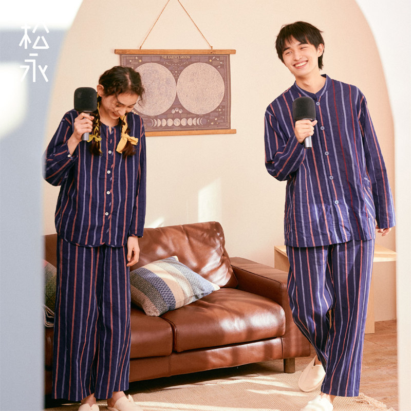 松永春夏棉麻情侣睡衣宽松 薄款简约日式长袖长裤家居服套装男女