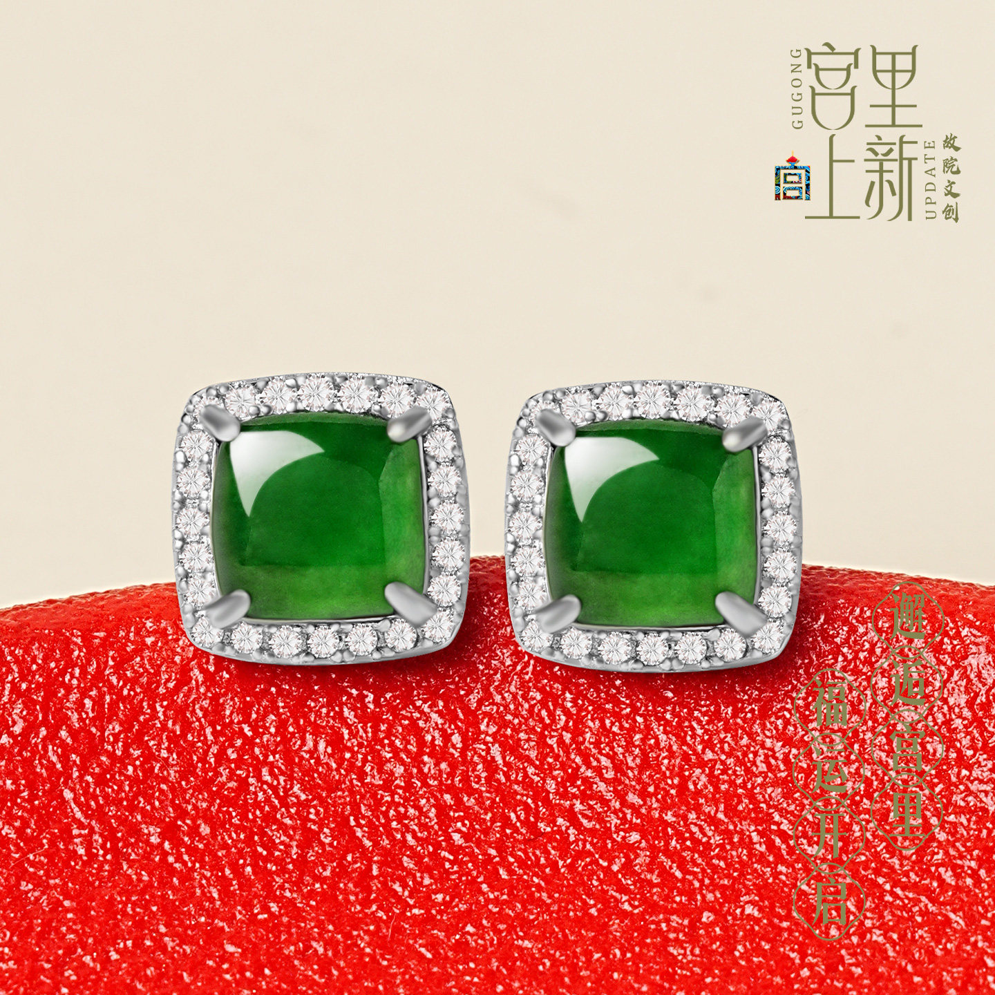 宫里上新翡翠耳钉女纯银绿色耳饰冬季玉石耳环国风生日礼物送妈妈