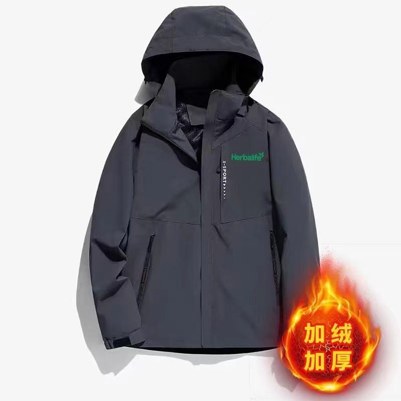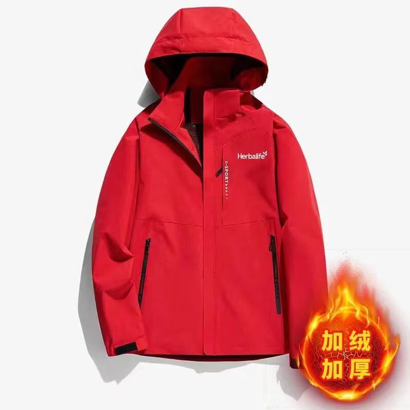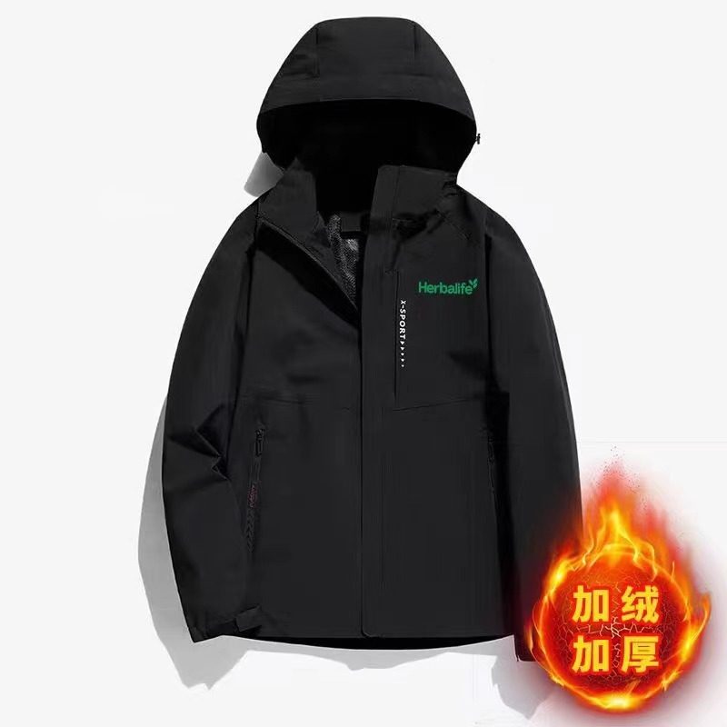 Herbalife冬季登山康宝莱冲锋衣情侣夹克男宽松加肥加绒大码外套