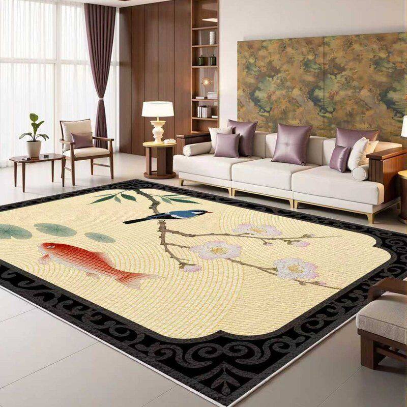 新中式仿羊绒客厅莲花图案地垫优质材料家居装饰地毯隔凉保暖地毯