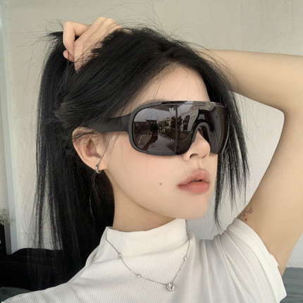 户外运动骑行黑色墨镜女高级感登山护目滑雪防风太阳眼镜大框显瘦