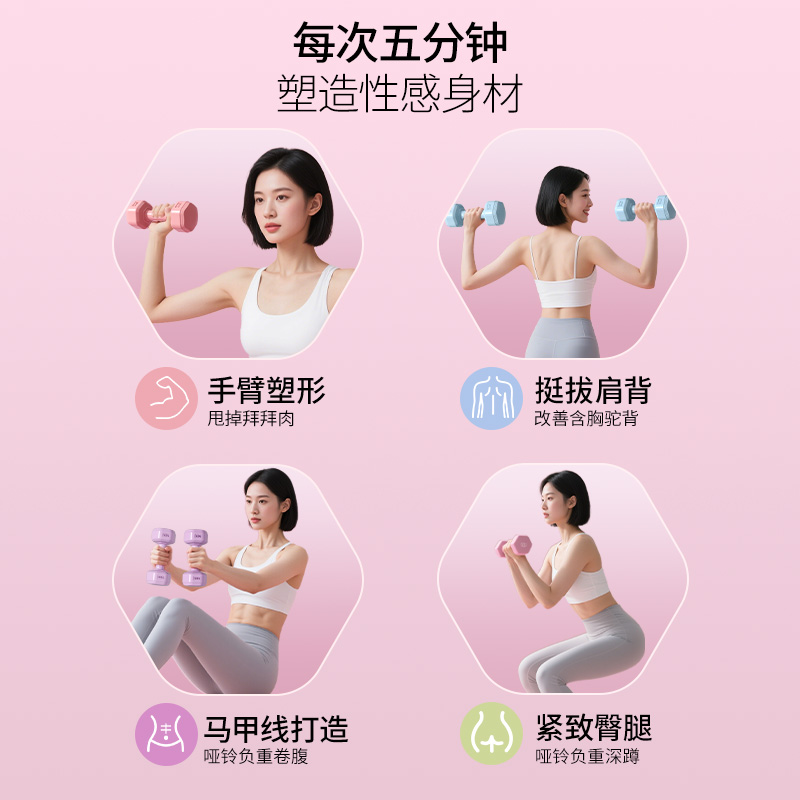 哑铃女士健身家用器材儿童青少年杠壶铃力量训练小哑铃2kg一对