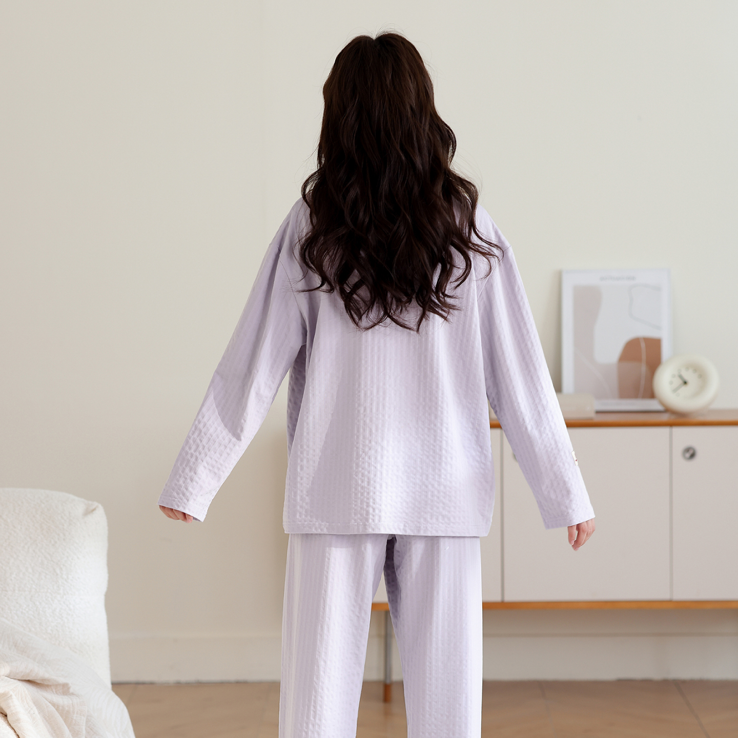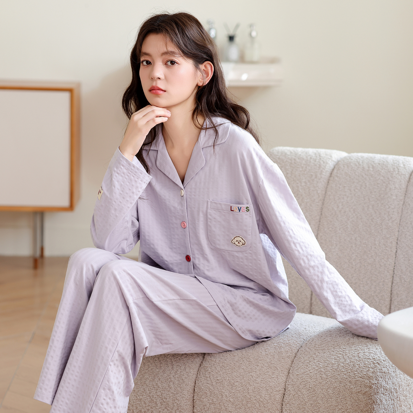 芬腾云感棉睡衣女春秋纯棉长袖翻领亲肤外穿家居服套装2025年新款