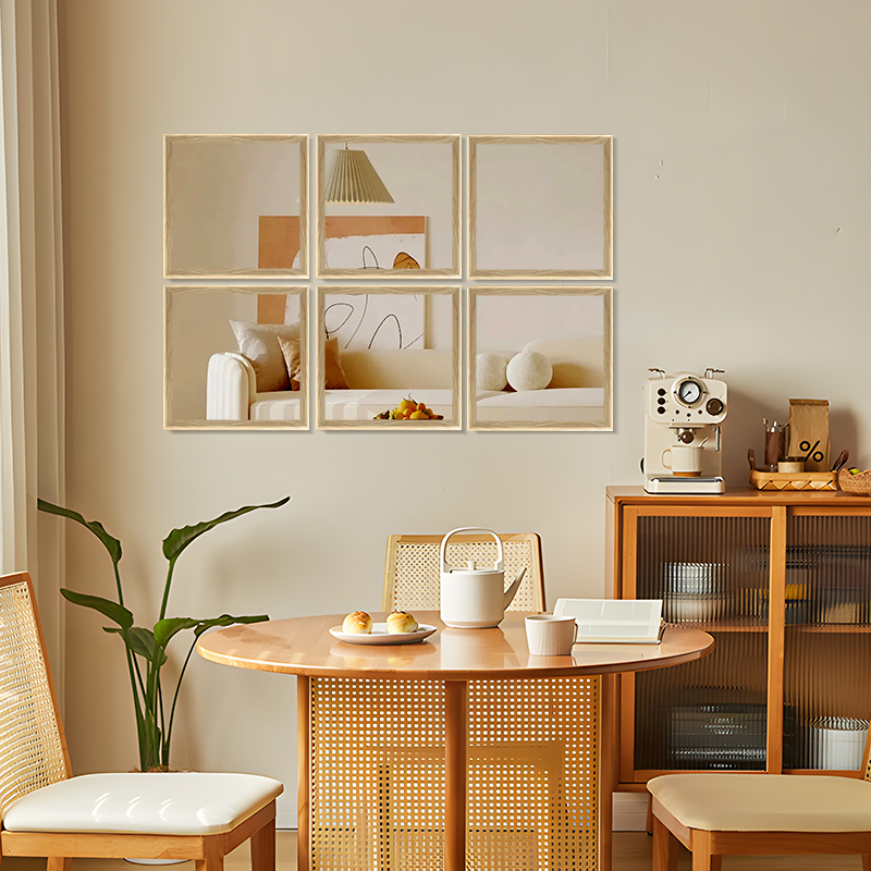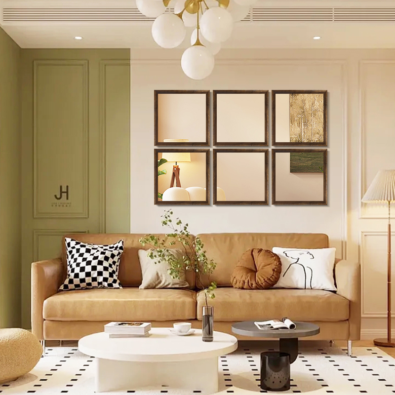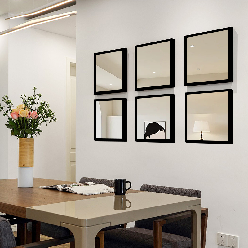 网红尼瑟达镜子实木方形格子镜餐边拼接镜子沙发背景墙组合装饰镜