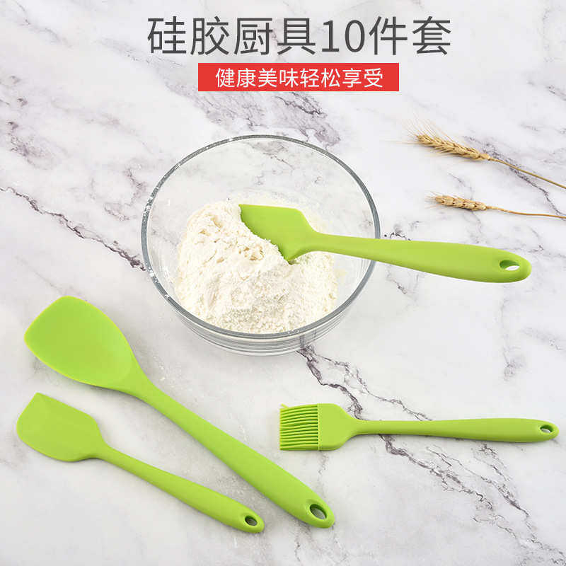 硅胶厨具套装 烹饪勺铲10件套烘培烧烤烹饪铲勺厨房用具厂家批发