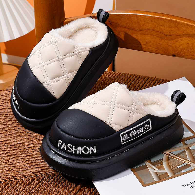 昌祥回力儿童棉拖鞋男童皮面防水加绒亲子拖鞋男女童居家冬季保暖
