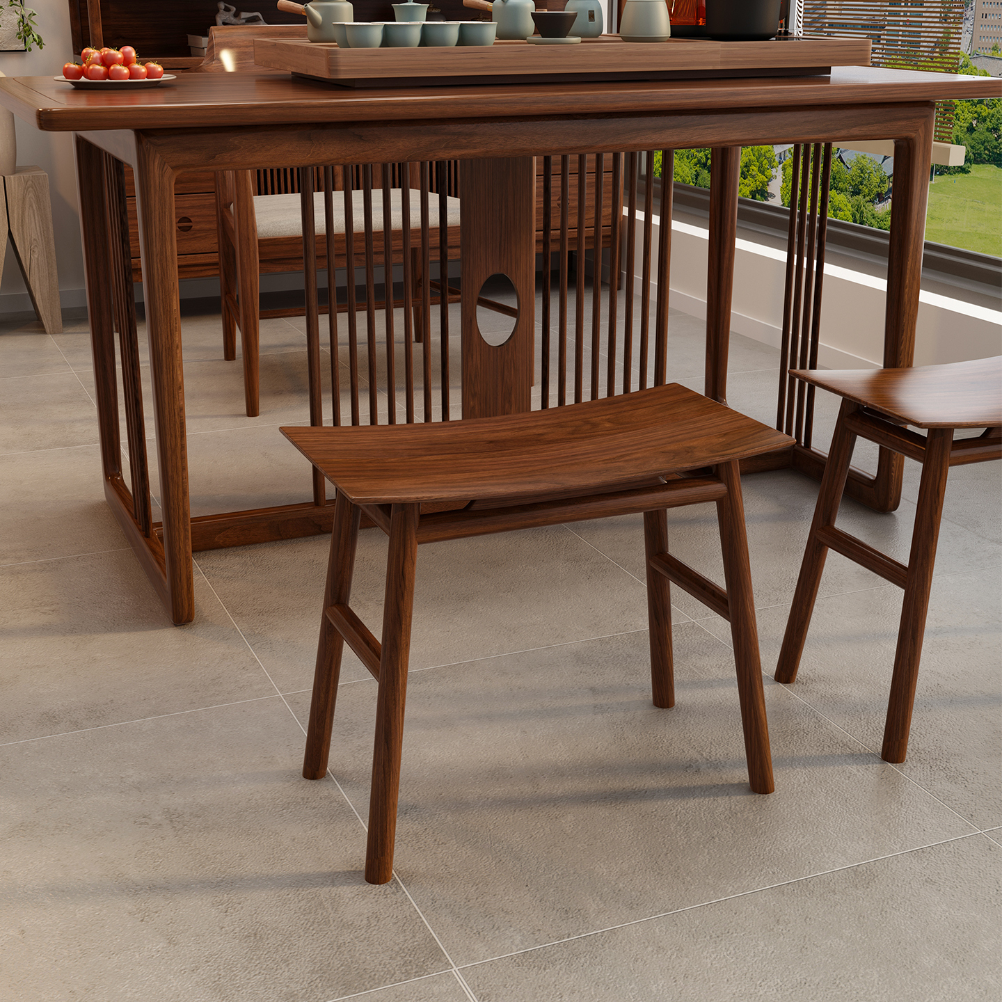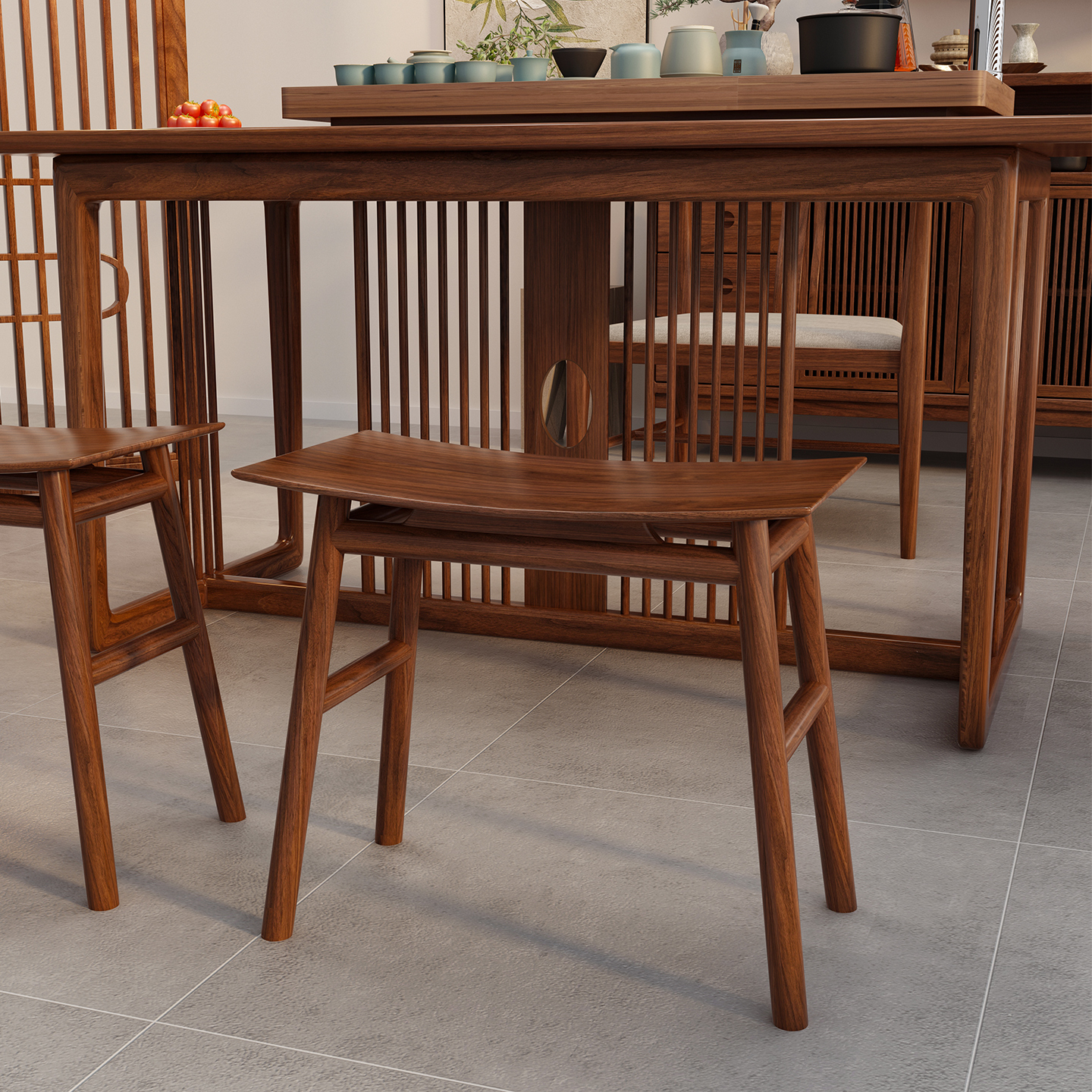 北美黑胡桃木凳子新中式纯实木矮凳家用茶桌凳子元宝凳长条马鞍凳