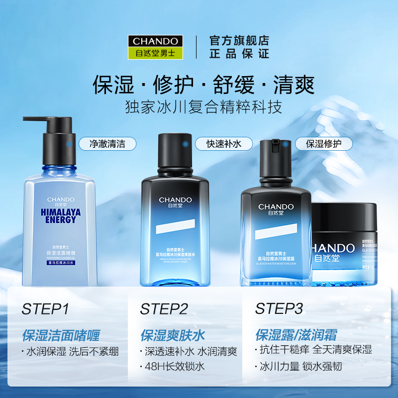 【同价双11】自然堂男士冰川保湿露水乳护肤套装舒缓强韧修护礼盒