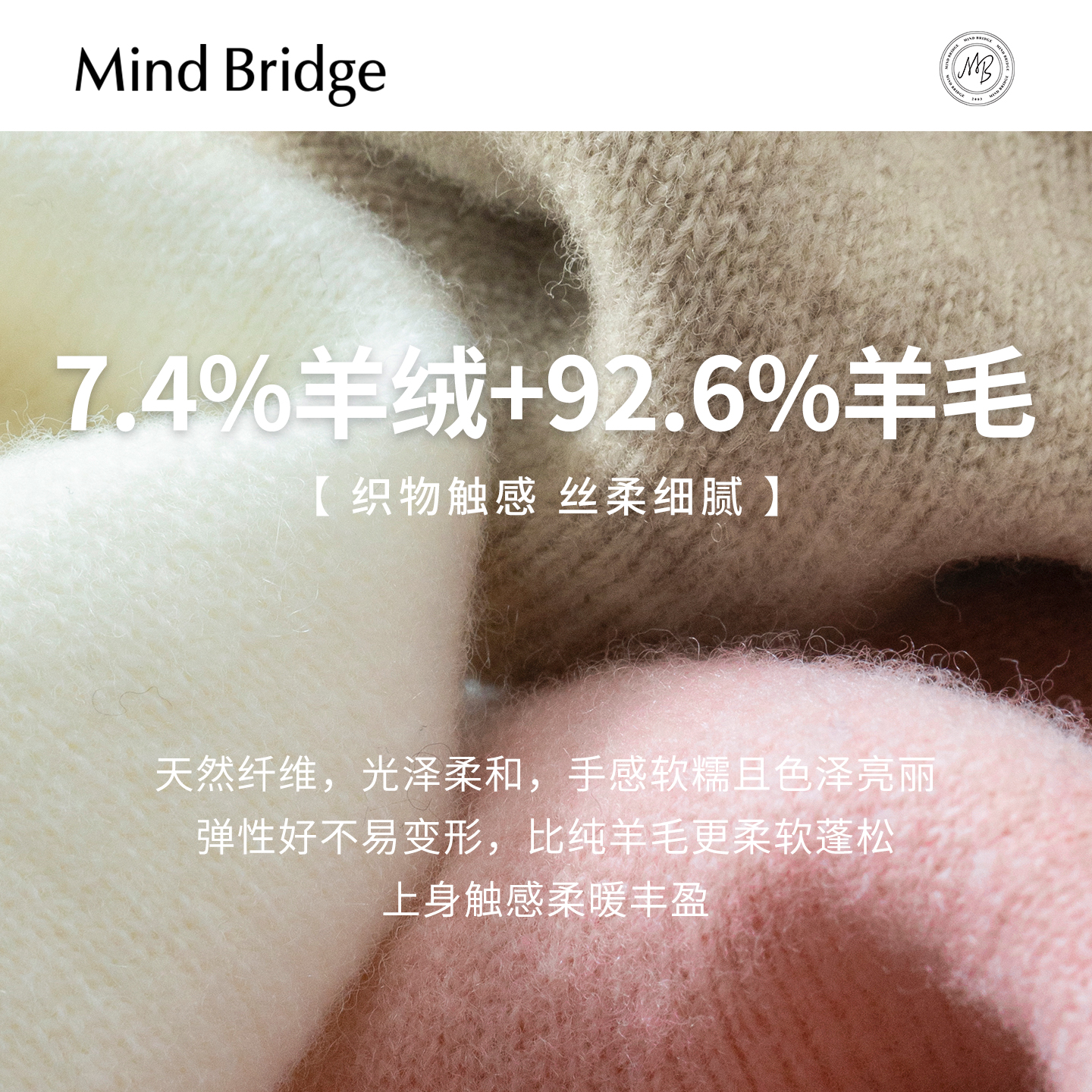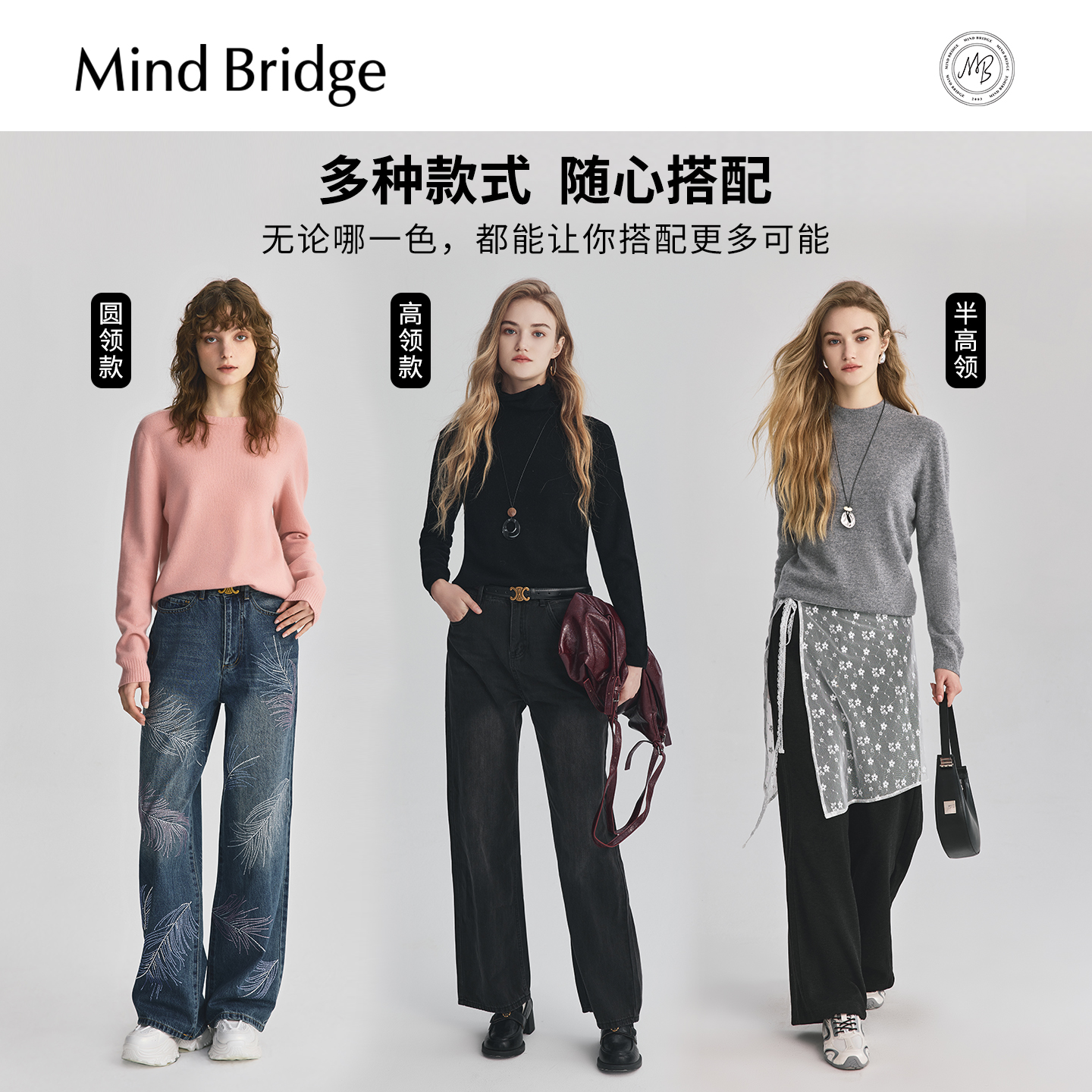 Mind Bridge【绵羊毛】女士半高领毛衣针织衫2025年冬纯色羊毛衫