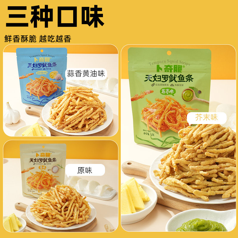 卜奇脆天妇罗鱿鱼条脆皮鱿鱼条芥末鱿鱼丝即食追剧小吃网红零食品