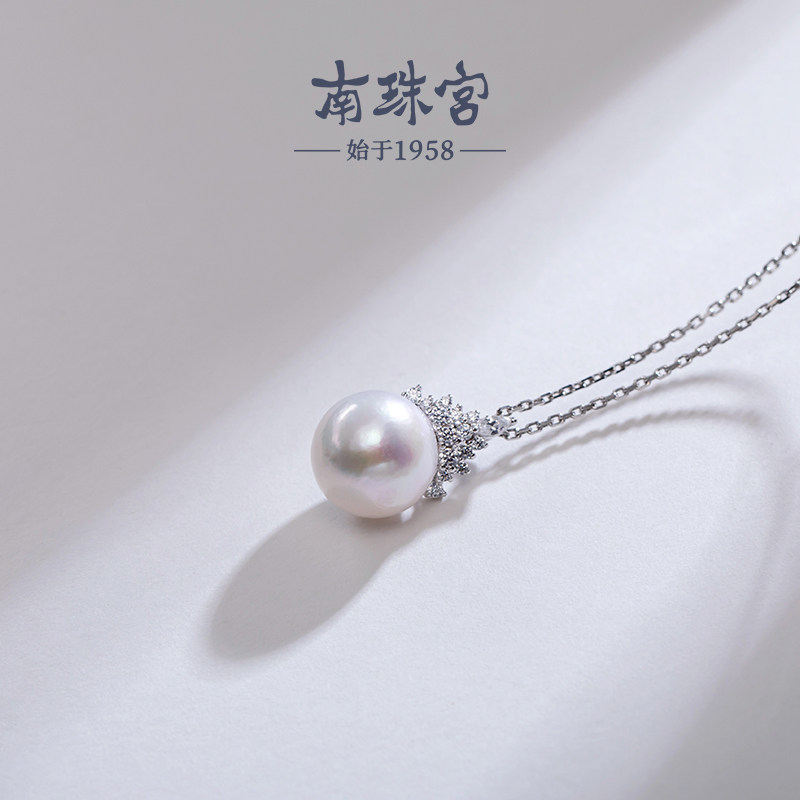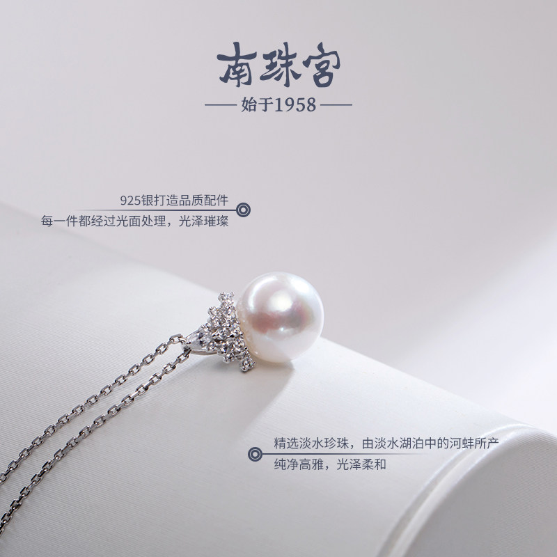 南珠宫925银淡水珍珠吊坠强光近圆年轻款生日礼物送女友D018SD-Y