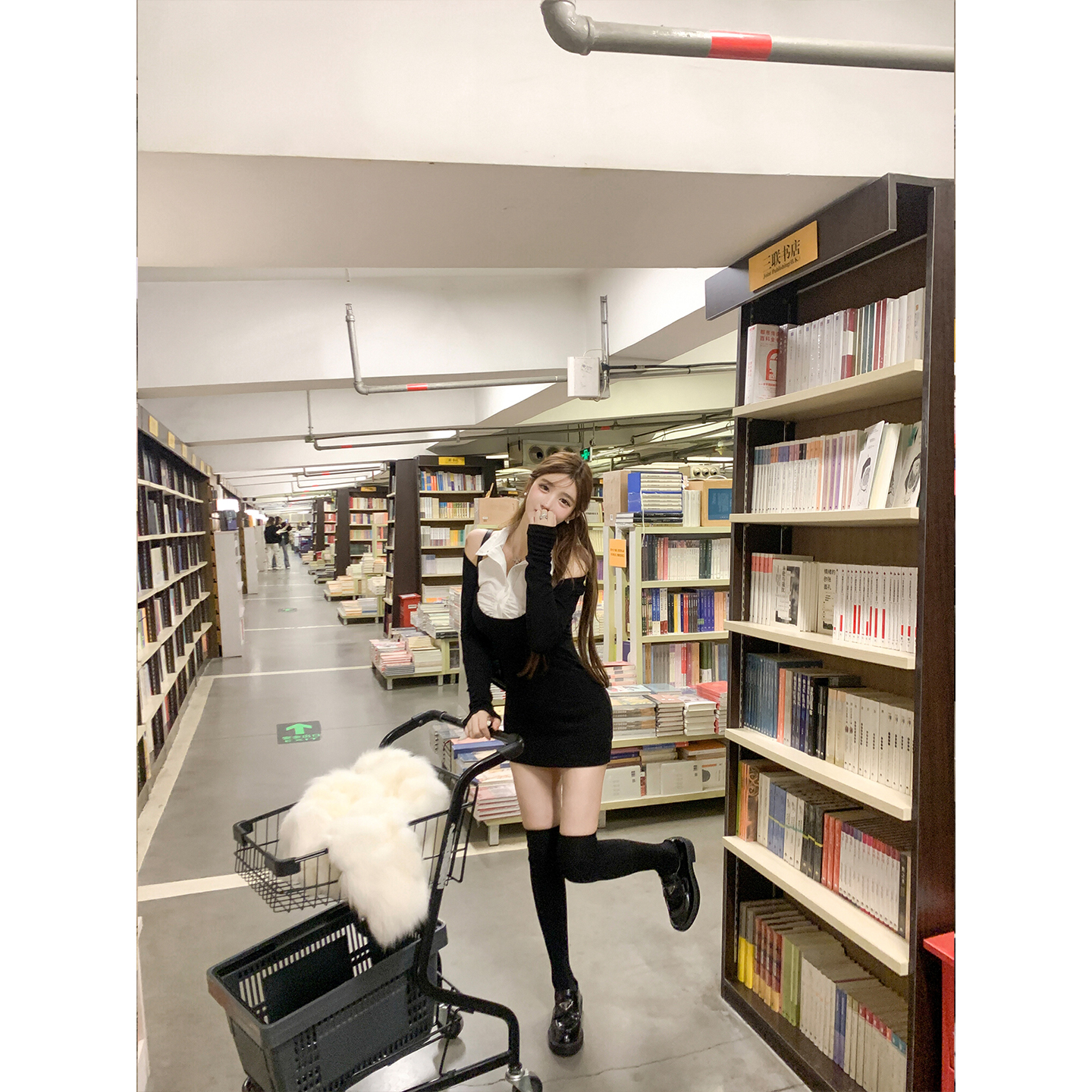 若语定制 纯欲美女感 气质名媛假两件修身包臀裙露肩打底连衣裙冬