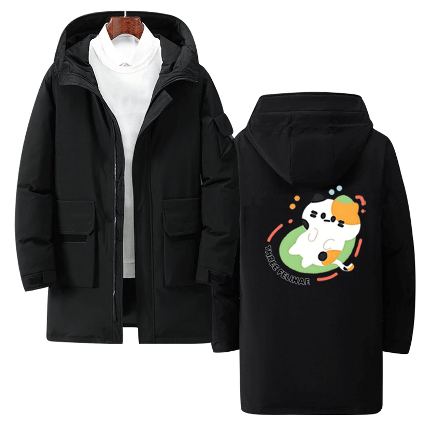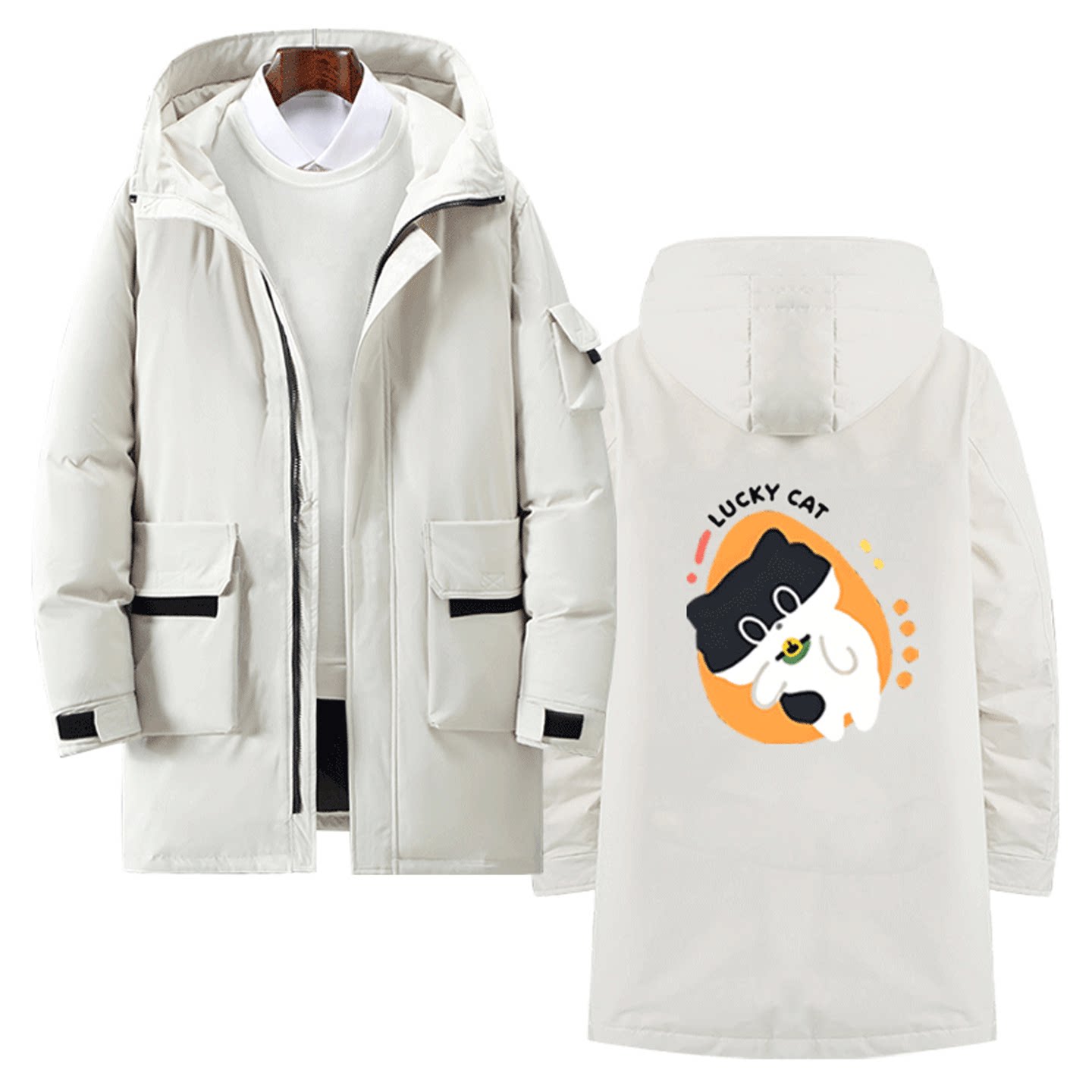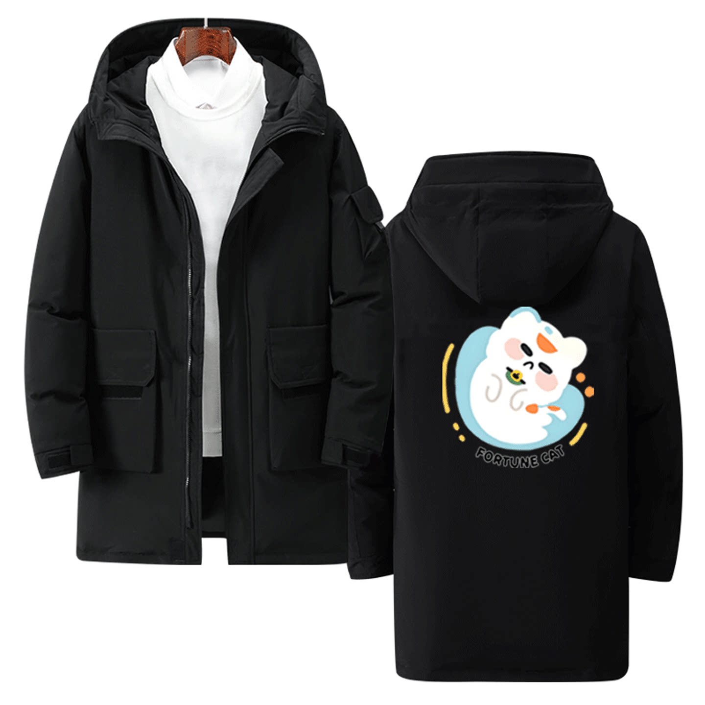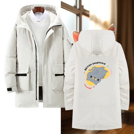 可爱猫咪卡通小猫印花可定制外套中长款羽绒服周边男女秋冬季情侣