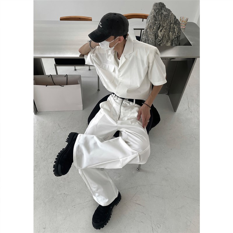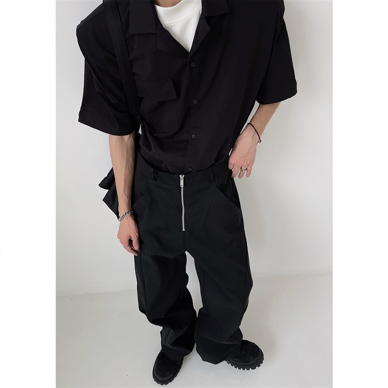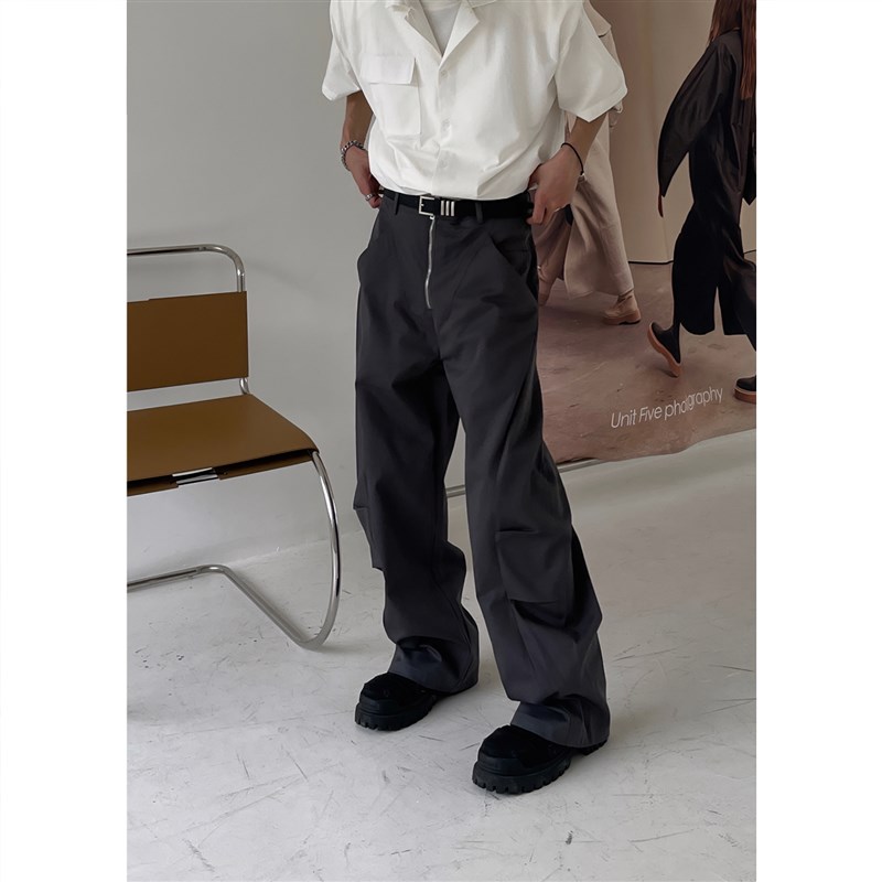 ZINGUP灰色拉链休闲裤男秋季美式高腰宽松高级感直筒阔腿裤子长裤