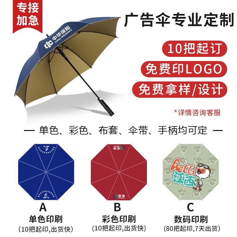 雨伞定制logo可印图案男抗风大号商务银J行公司直杆长柄广告伞订