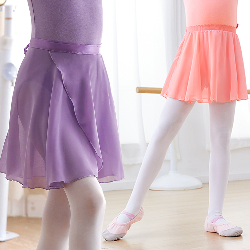 儿童舞蹈服半身裙女童一片式舞蹈裙雪纺纱裙围裙中国舞芭蕾舞短裙
