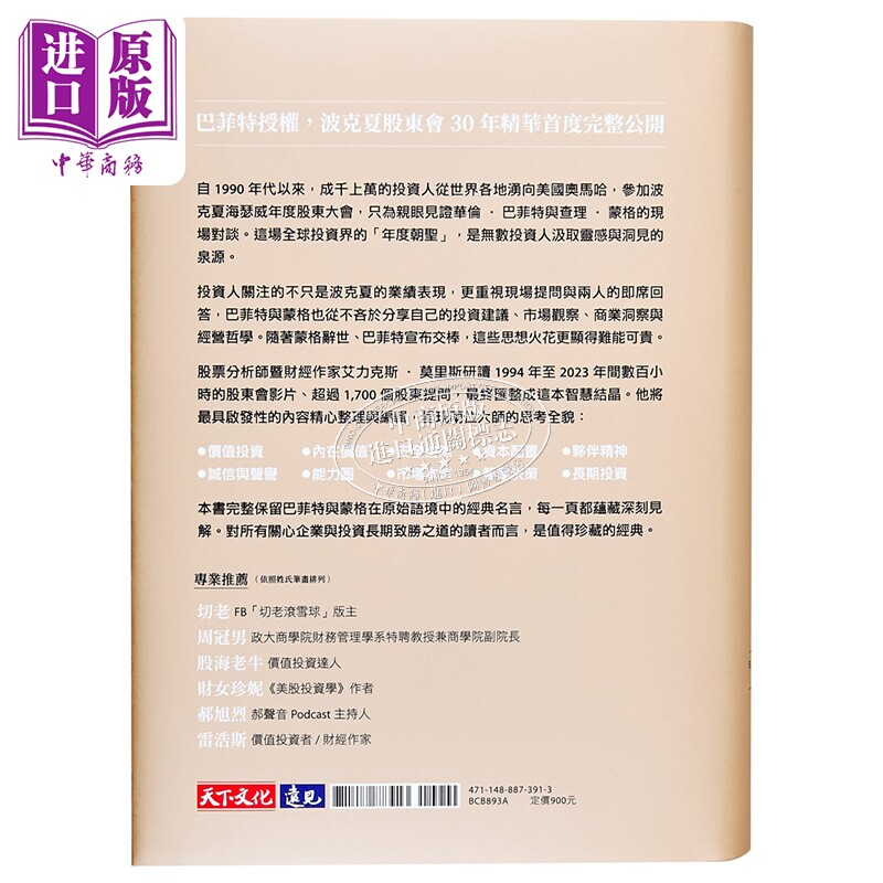 请问巴菲特与蒙格 独家特金书封版 波克夏股东会的投资与经营智慧 港台原版 华伦巴菲特 查理蒙格 天下文化【中商原版】