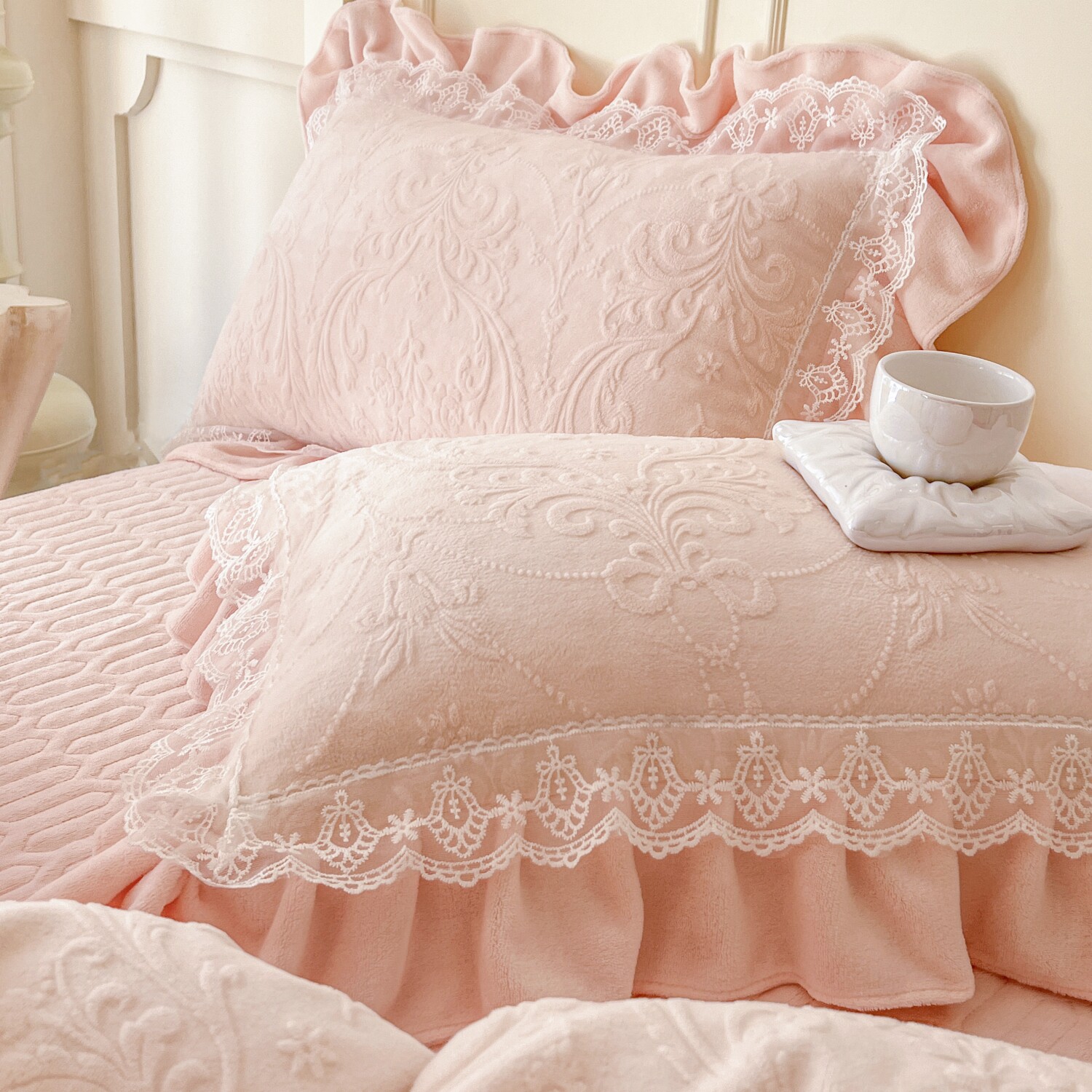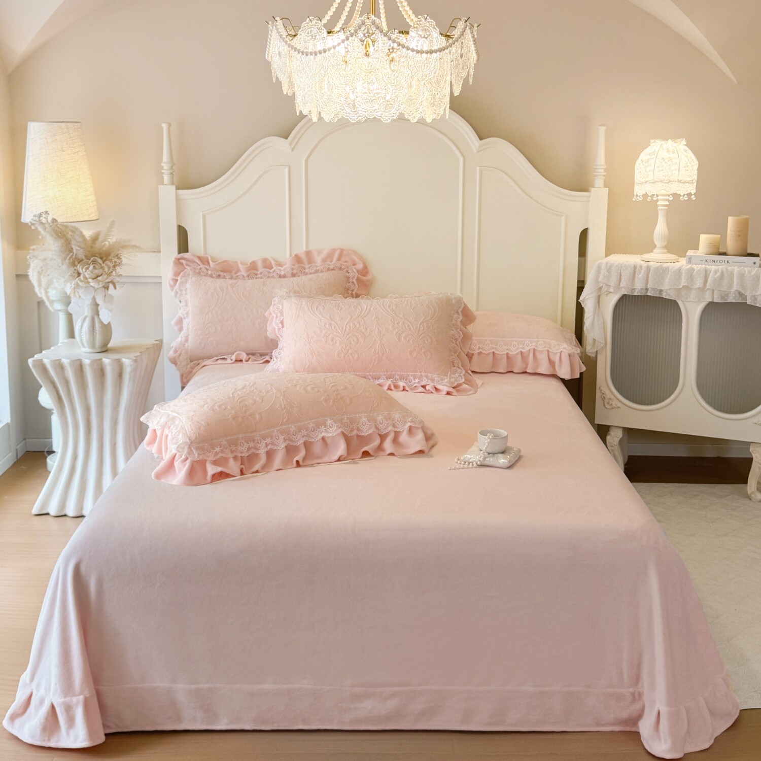 法式风A类牛奶绒四件套夹棉床盖珊瑚绒被套冬季加厚保暖床上用品4