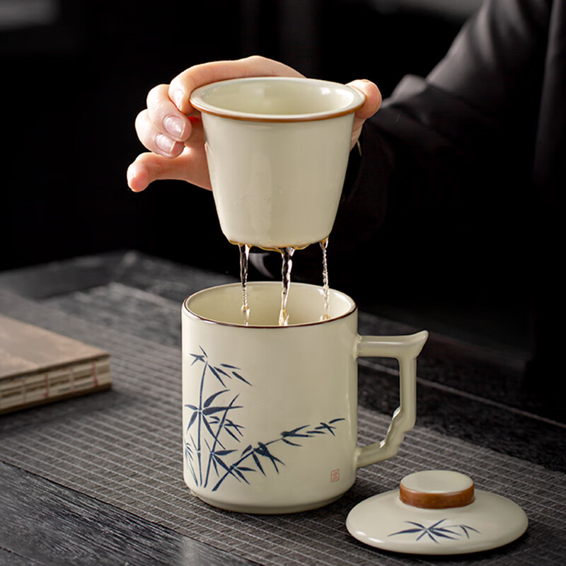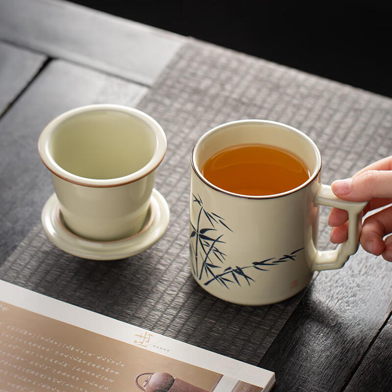 金镶玉吕承明老师纯全手绘汝窑办公杯竹叶汝瓷开片可养泡茶杯水杯