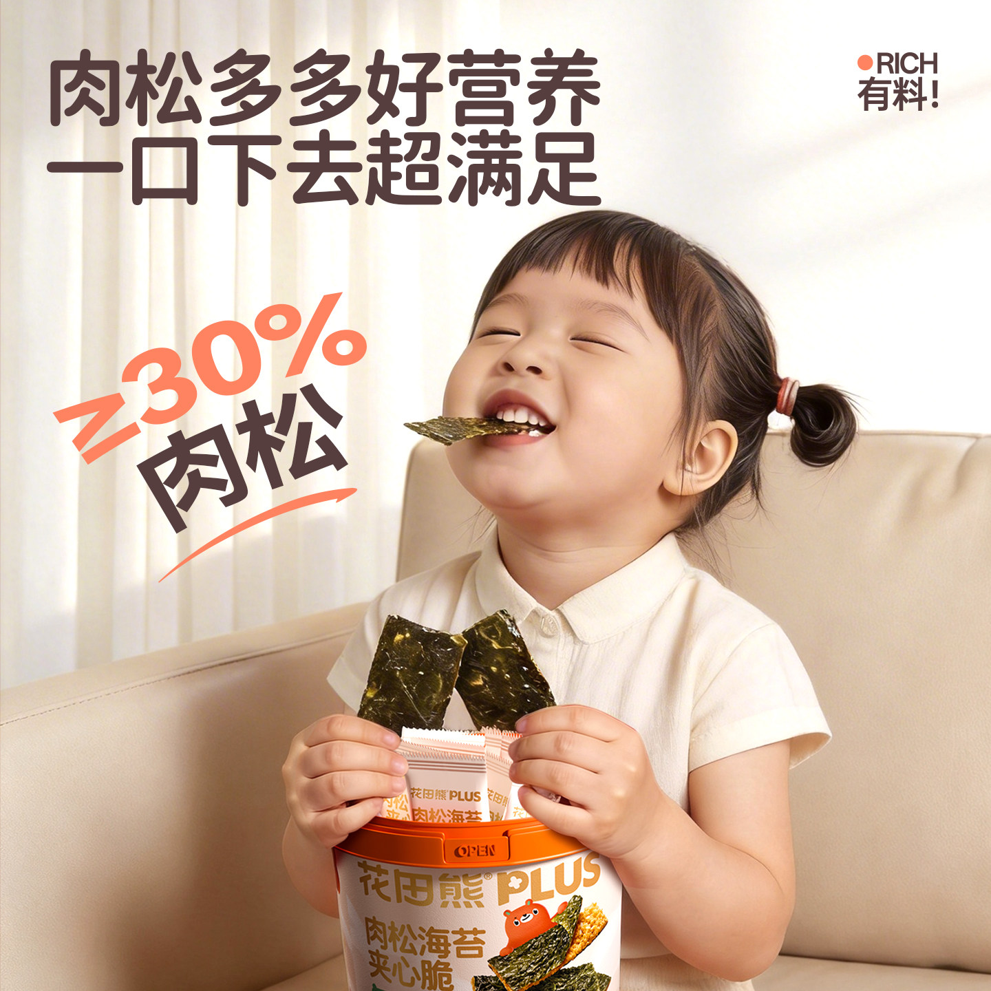 花田熊肉松海苔夹心脆儿童即食零食学生大片紫菜送宝宝婴儿辅食谱