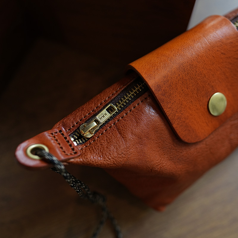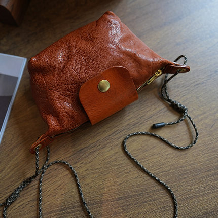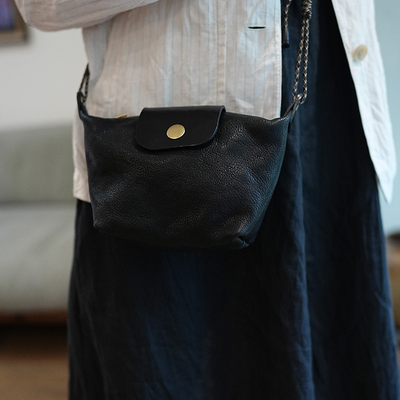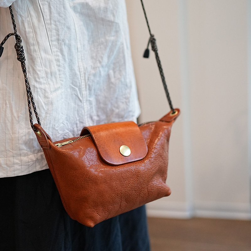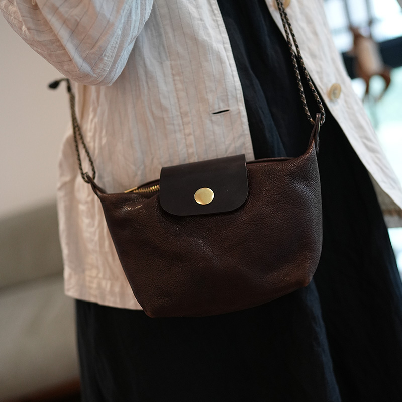 植鞣牛皮美式复古简约饺子包