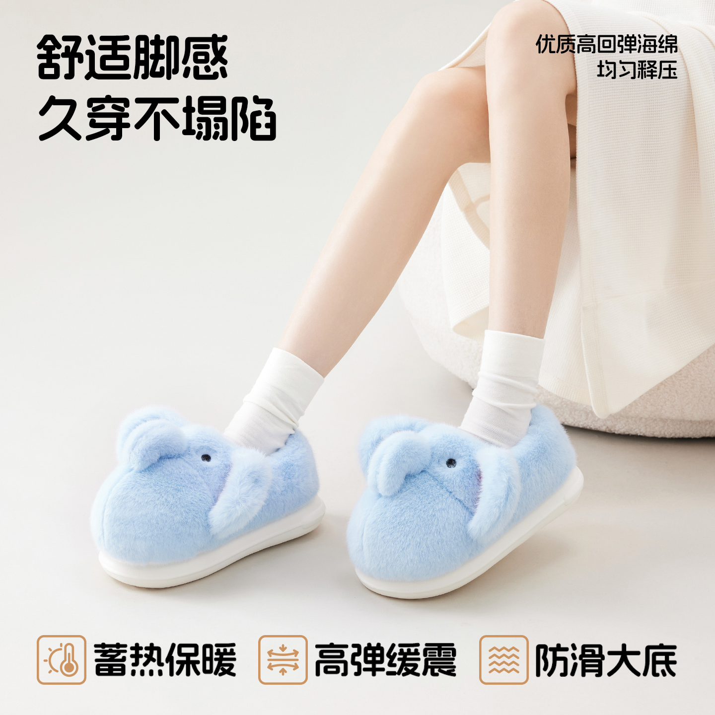 chikoku萌物圆棉靴/大象/Hello Kitty包跟棉拖女冬保暖居家棉拖鞋