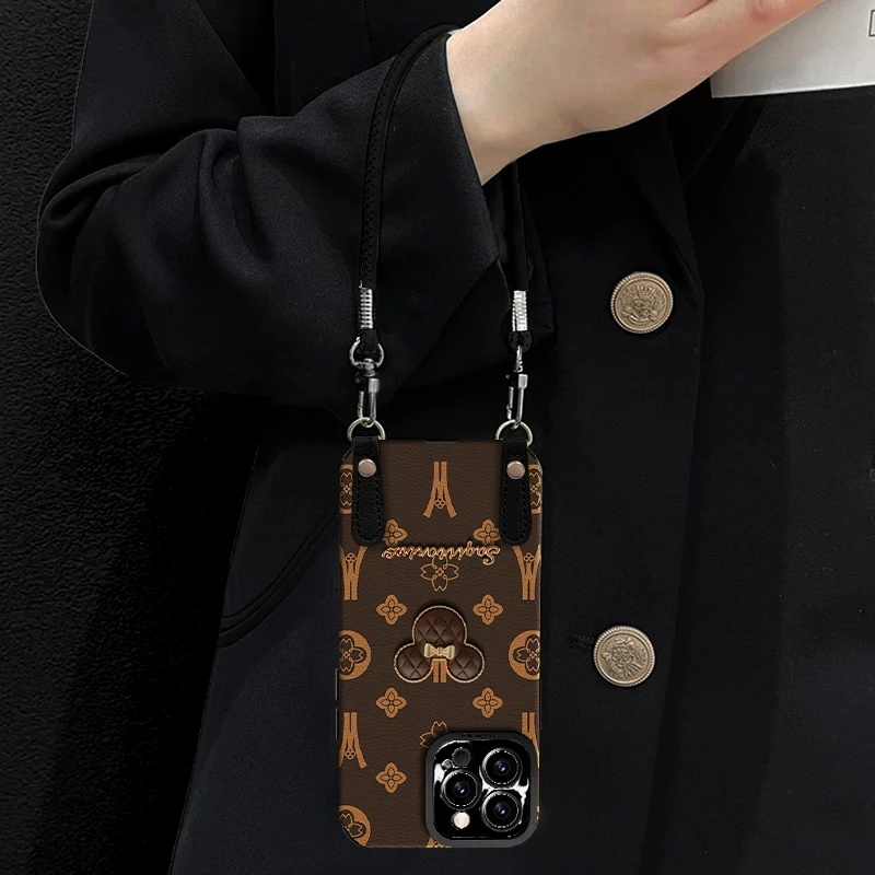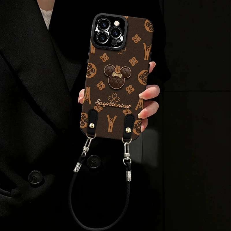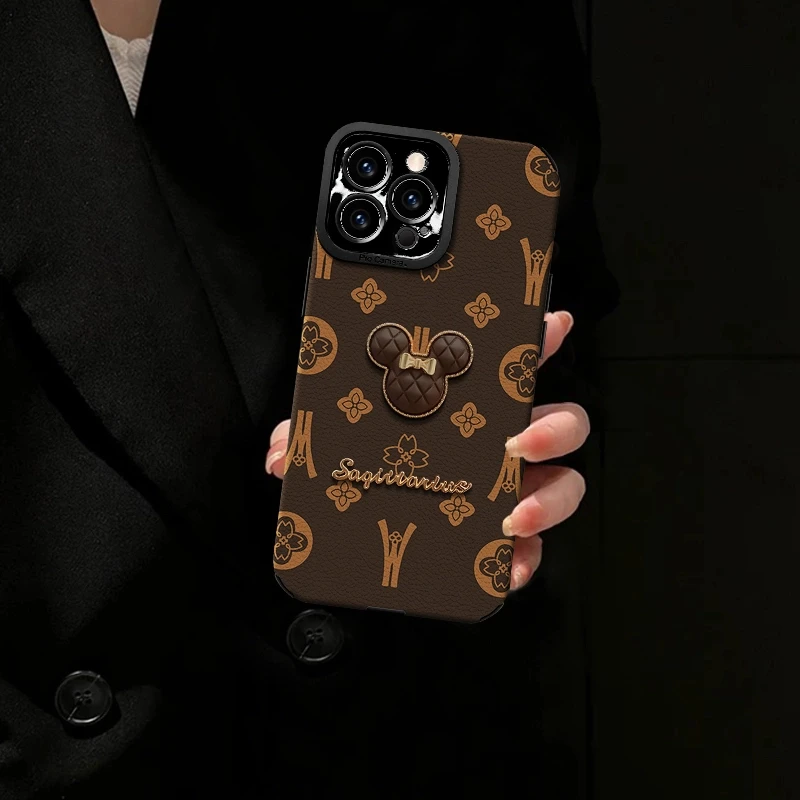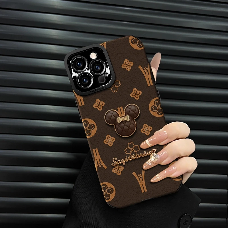 老花纹轻奢皮质荔枝纹米奇手提适用苹果16promax手机壳iPhone15/14华为pura80简约mate60pro高级女OPPO/vivo