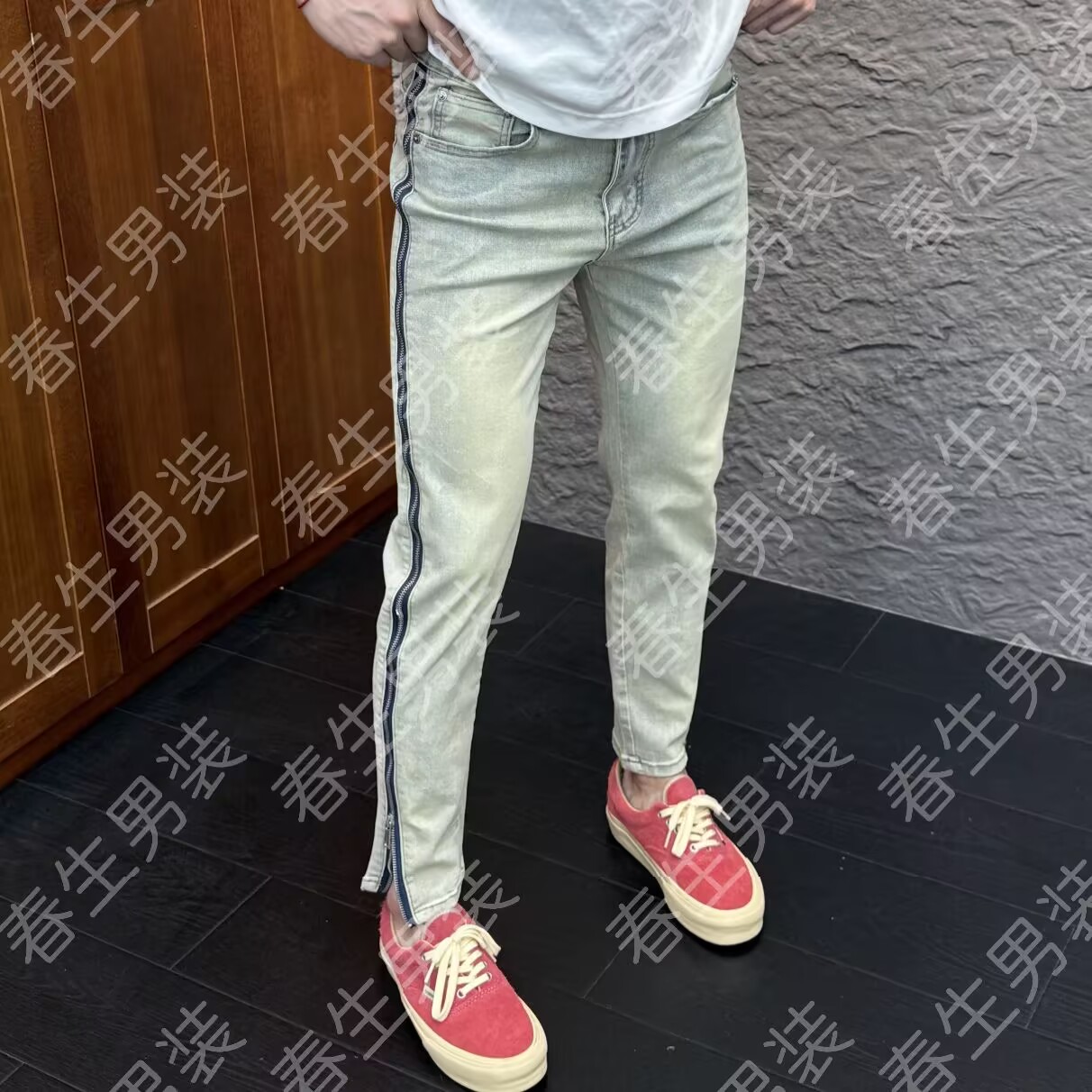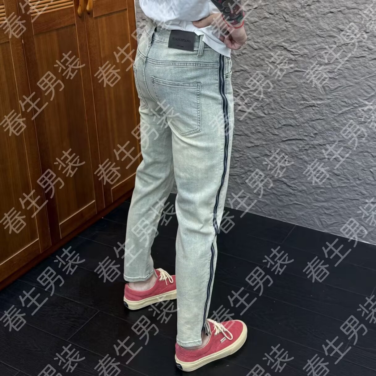 设计长拉链牛仔裤男修身小脚2025