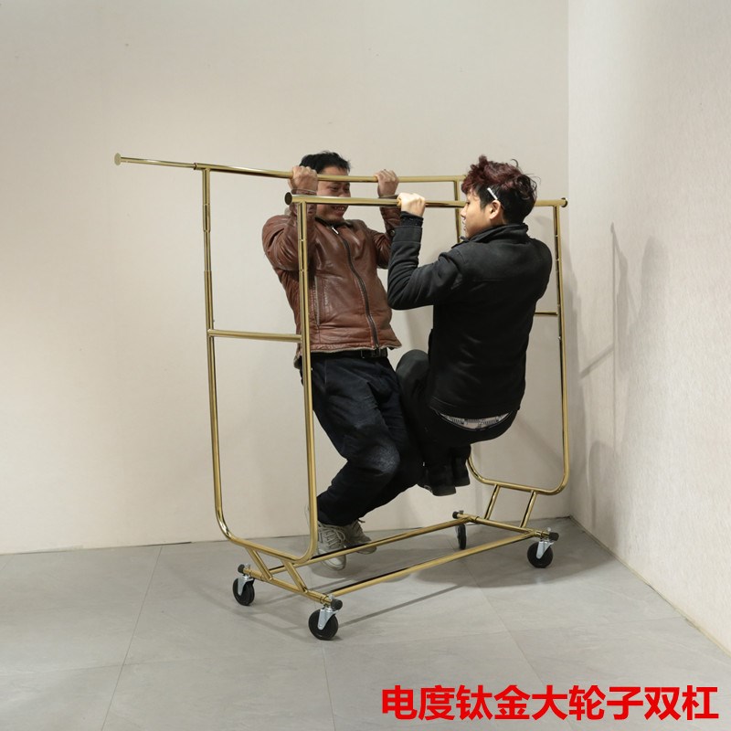 速发服装展示架落地式货架可升降挂衣架龙门架带轮单杆折叠试架子