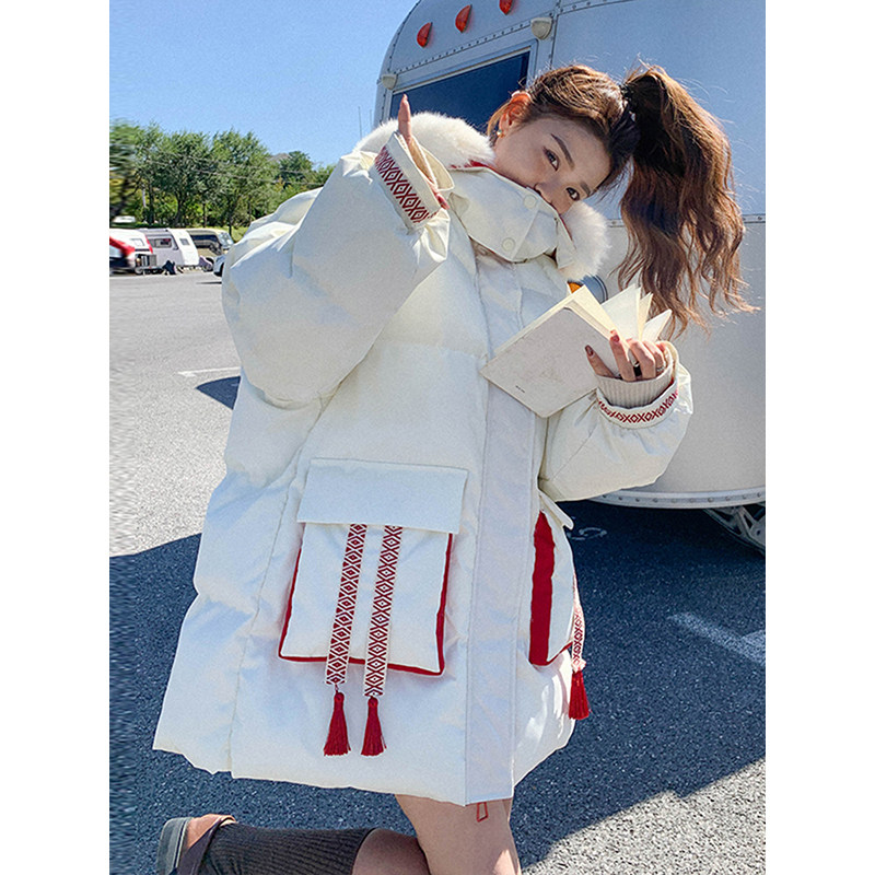 胖mm特大码女装加厚连帽棉服女新中式国风面包服可爱减龄白色外套
