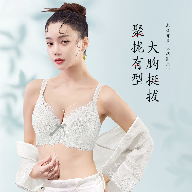 大胸蕾丝内衣上托防下垂薄款文胸