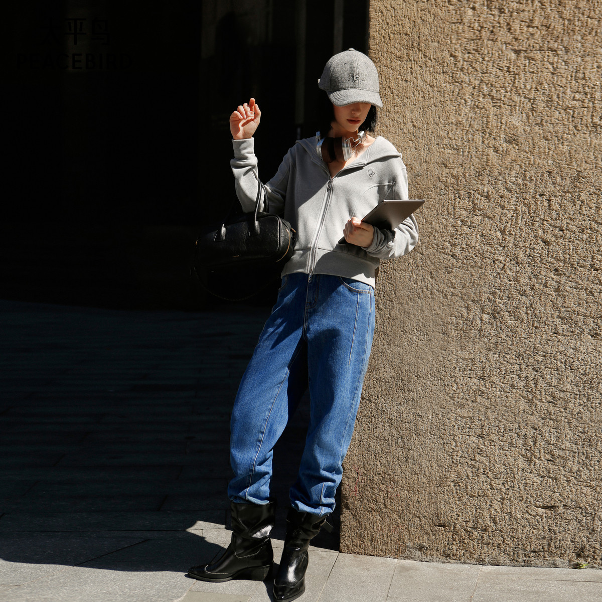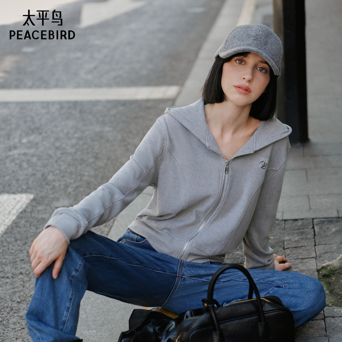 太平鸟女装冬季款软糯针织连帽卫衣A1CRE4293
