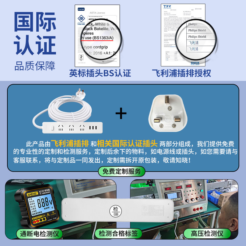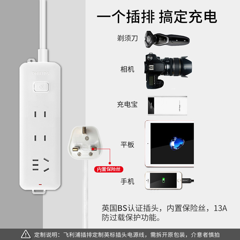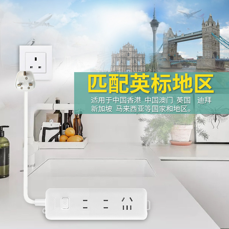 飞利浦英标插排排插转换插头中国香港英国新加坡英式插座拖线板