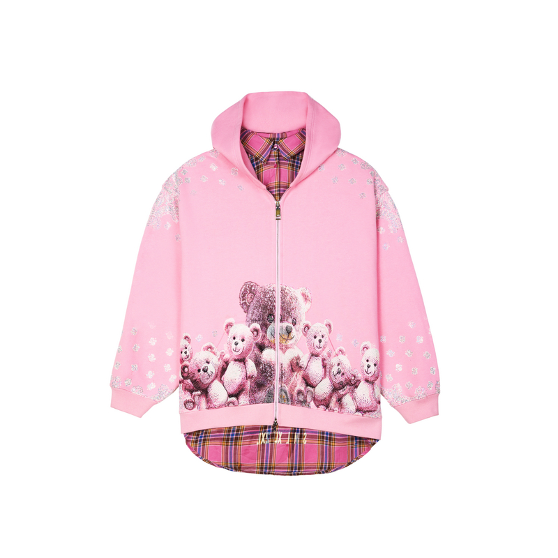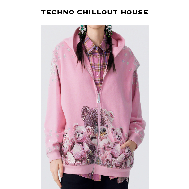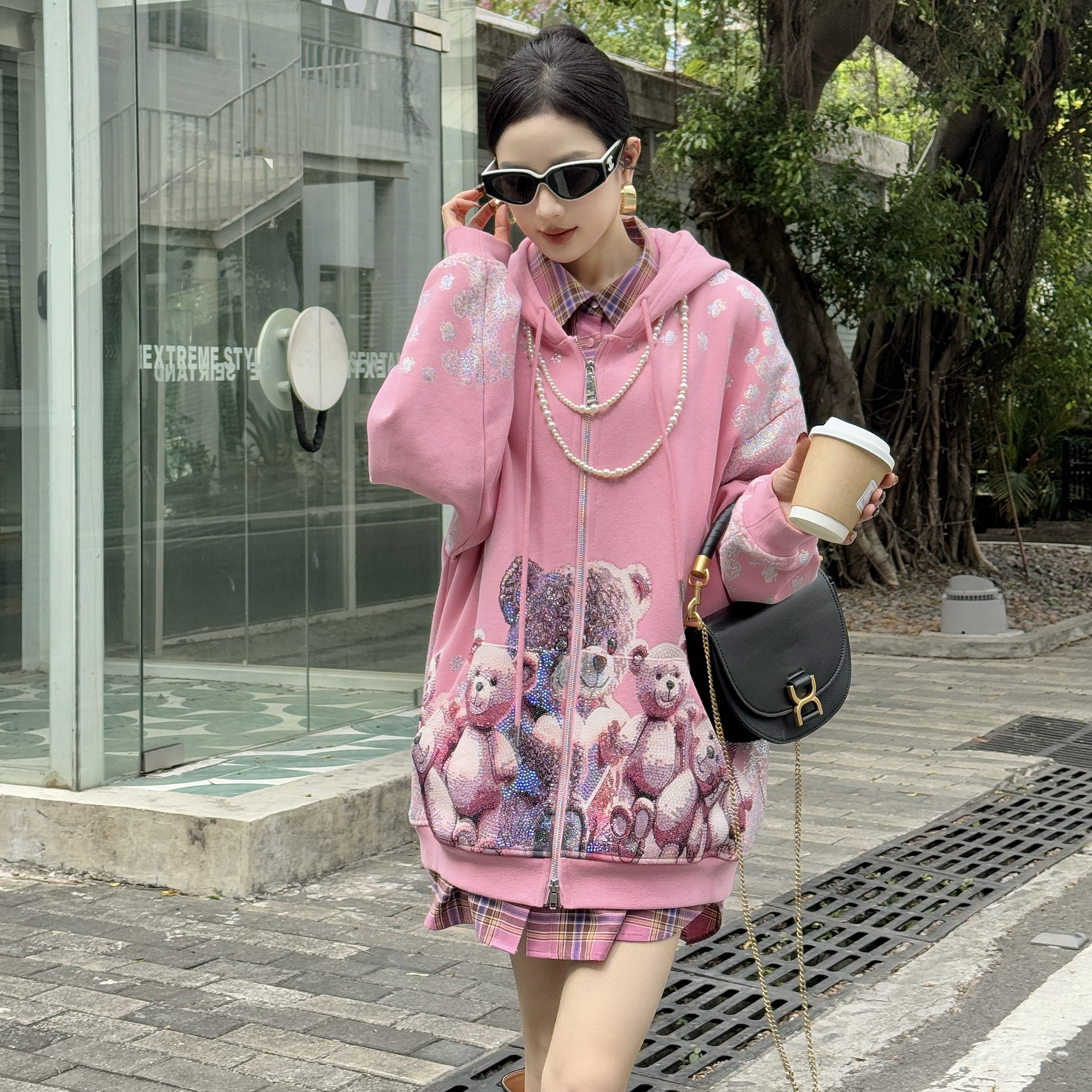 TCH潮牌假两件个性烫钻小熊长袖拉链卫衣外套男女同款24秋冬新款