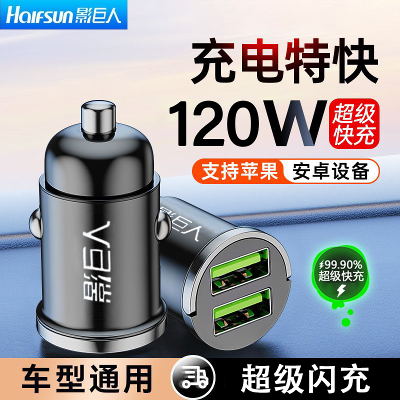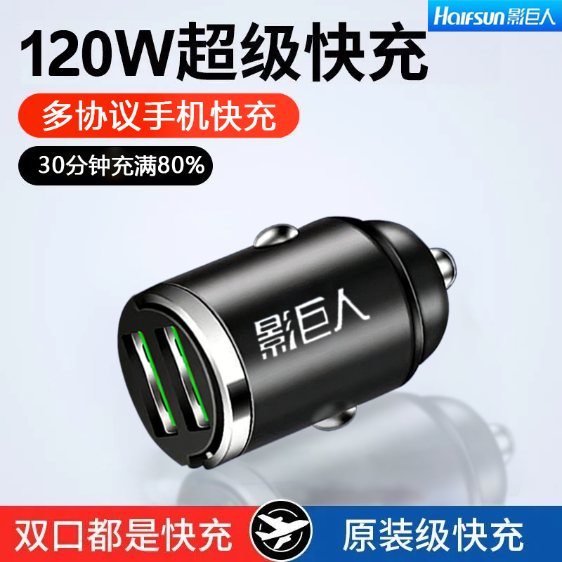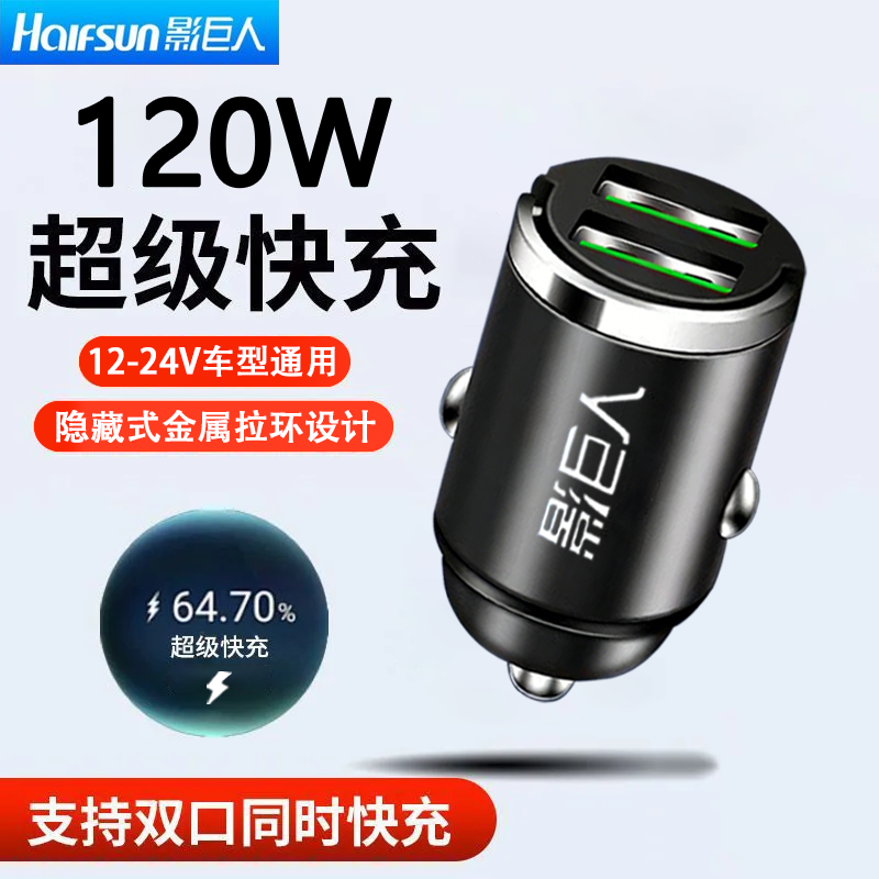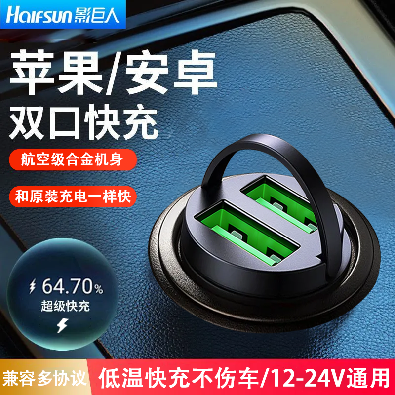 影巨人拉环车载充电器超级快充点烟器一拖二USB车充汽车手机闪充