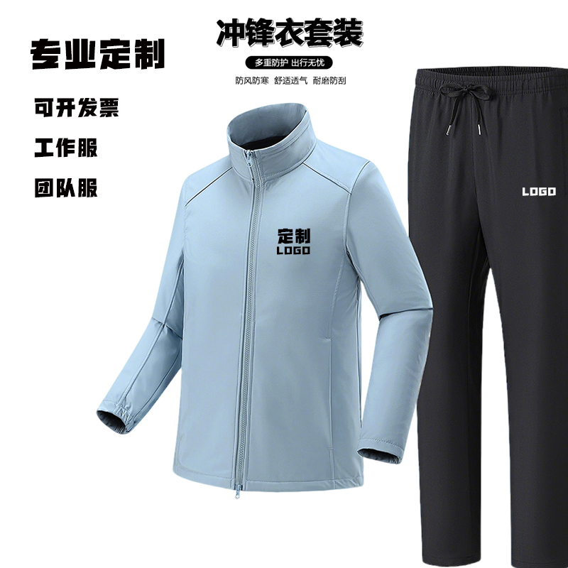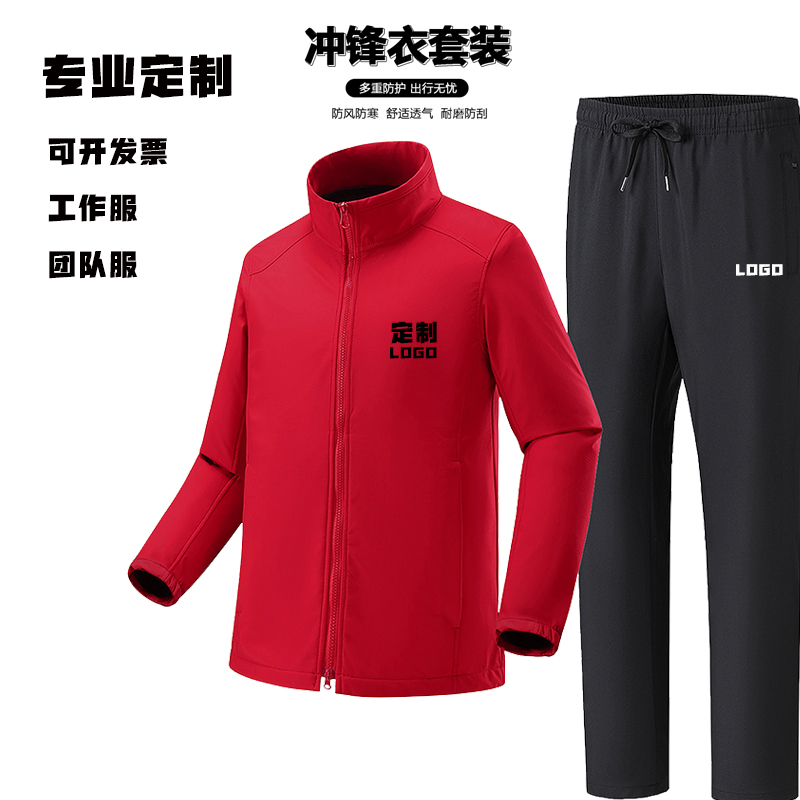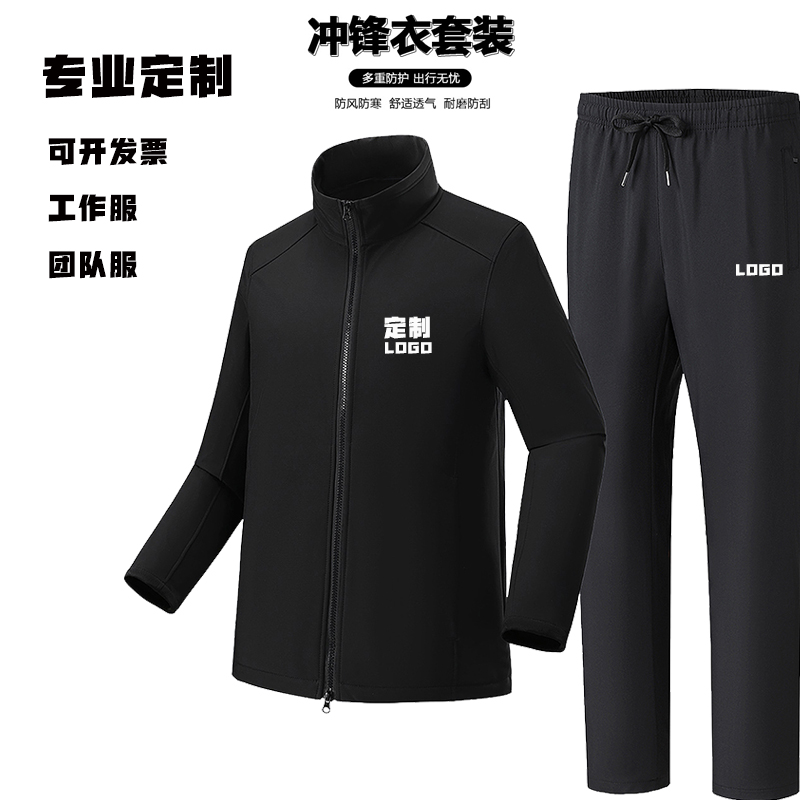 定制logo工作服团体服户外休闲防水冲锋衣上衣裤子保暖套装一整套
