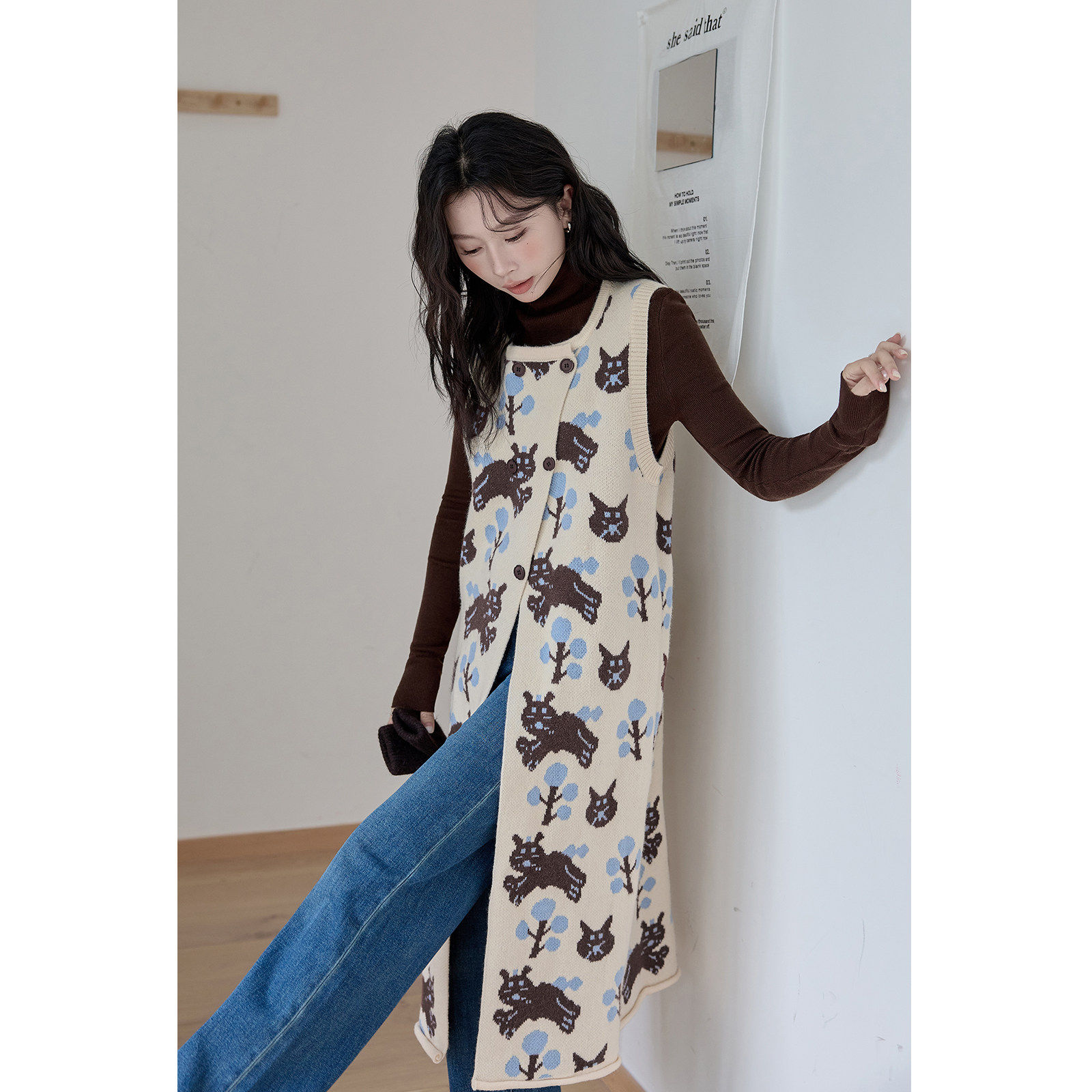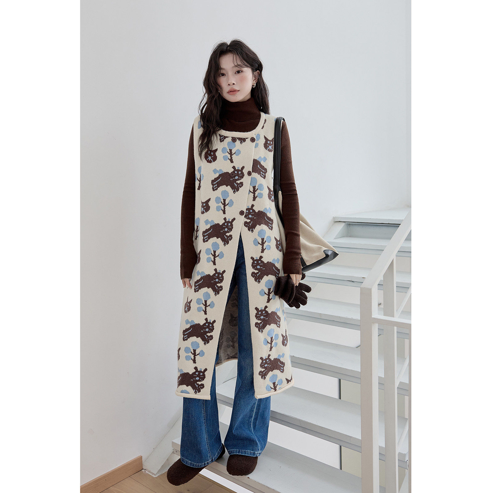 HUIXI绘系针织开衫背心