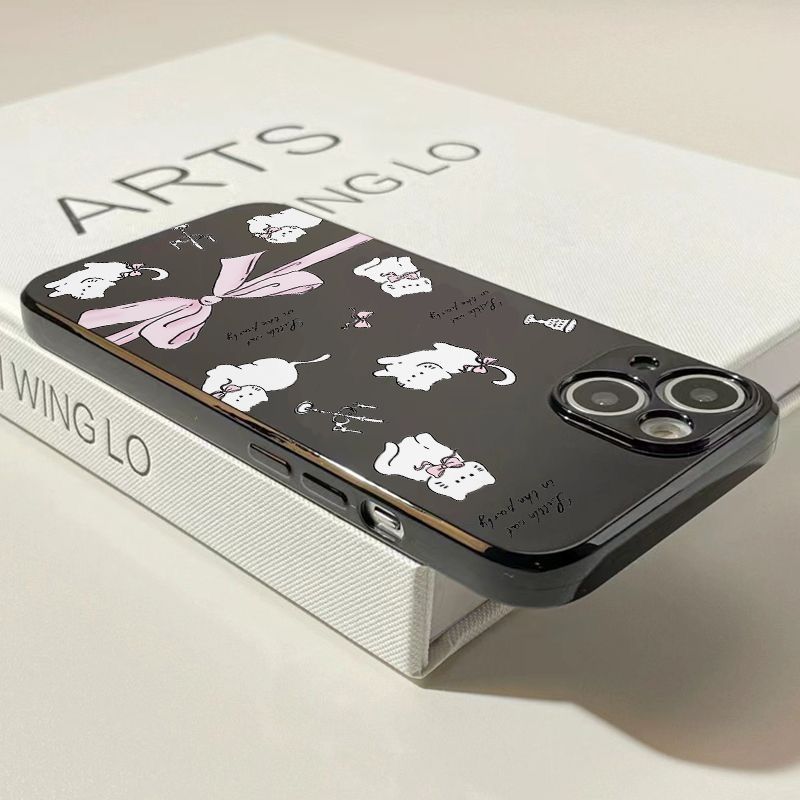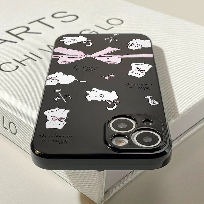 猫咪蝴蝶结适用苹果15手机壳iPhone11亮面黑12/13/14promax日韩风4/5S直边6/7/8PLUS软套XSMAX防摔保护XR潮壳