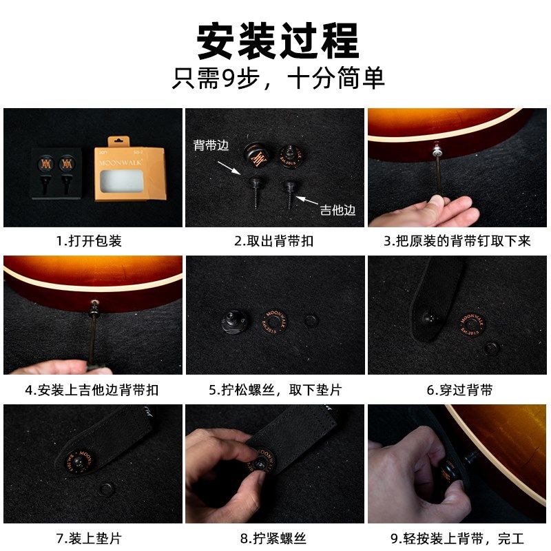 MOONWALK SLS-2电吉他背带扣背带快卸扣贝斯合金镀镍防脱背带锁扣