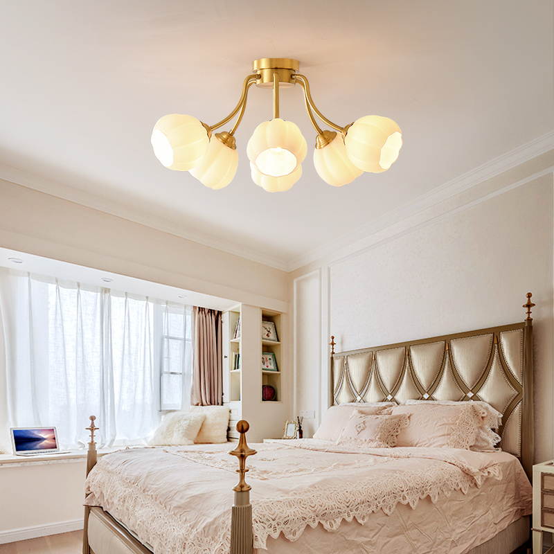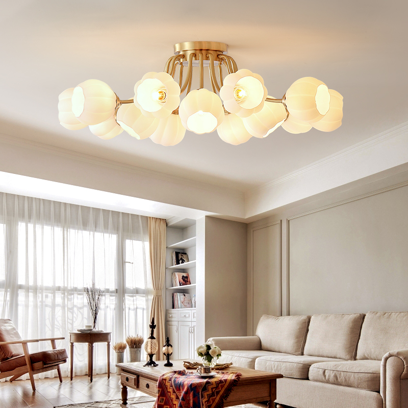 法式复古客厅吸顶灯吊灯大气新款美式全铜餐厅卧室轻奢个性花朵灯