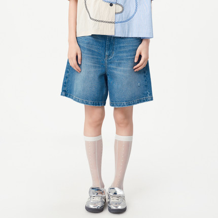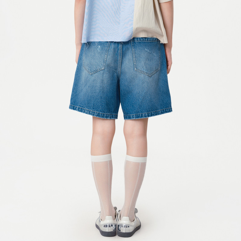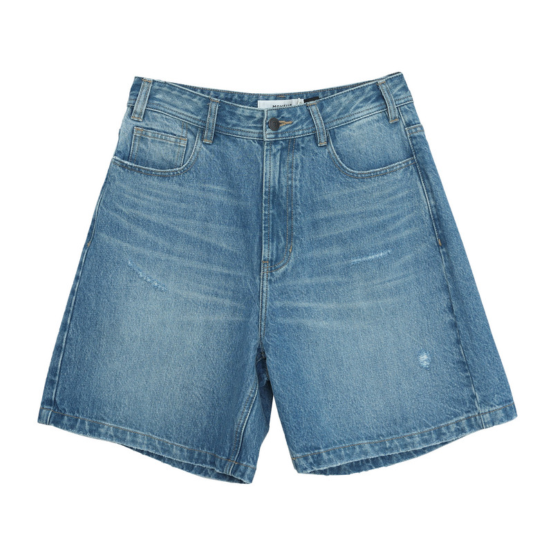 【商场同款】MOVEUP幻走2025夏季新款不规则磨破口袋微喇牛仔短裤