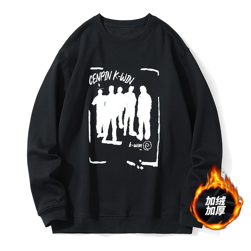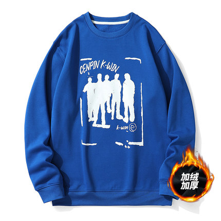诚品加绒加厚圆领卫衣男女宽松上衣情侣秋冬季运动休闲保暖套头衫