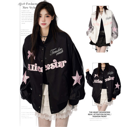 DUSK美式2025春秋冬蝴蝶刺绣棒球服外套女甜酷穿搭撞色夹克上衣潮