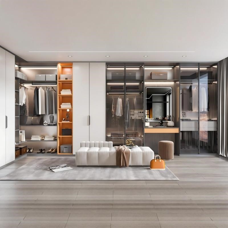 上海兔宝宝全屋定制整体衣帽间小户型简约现代卧室走入式转角衣柜