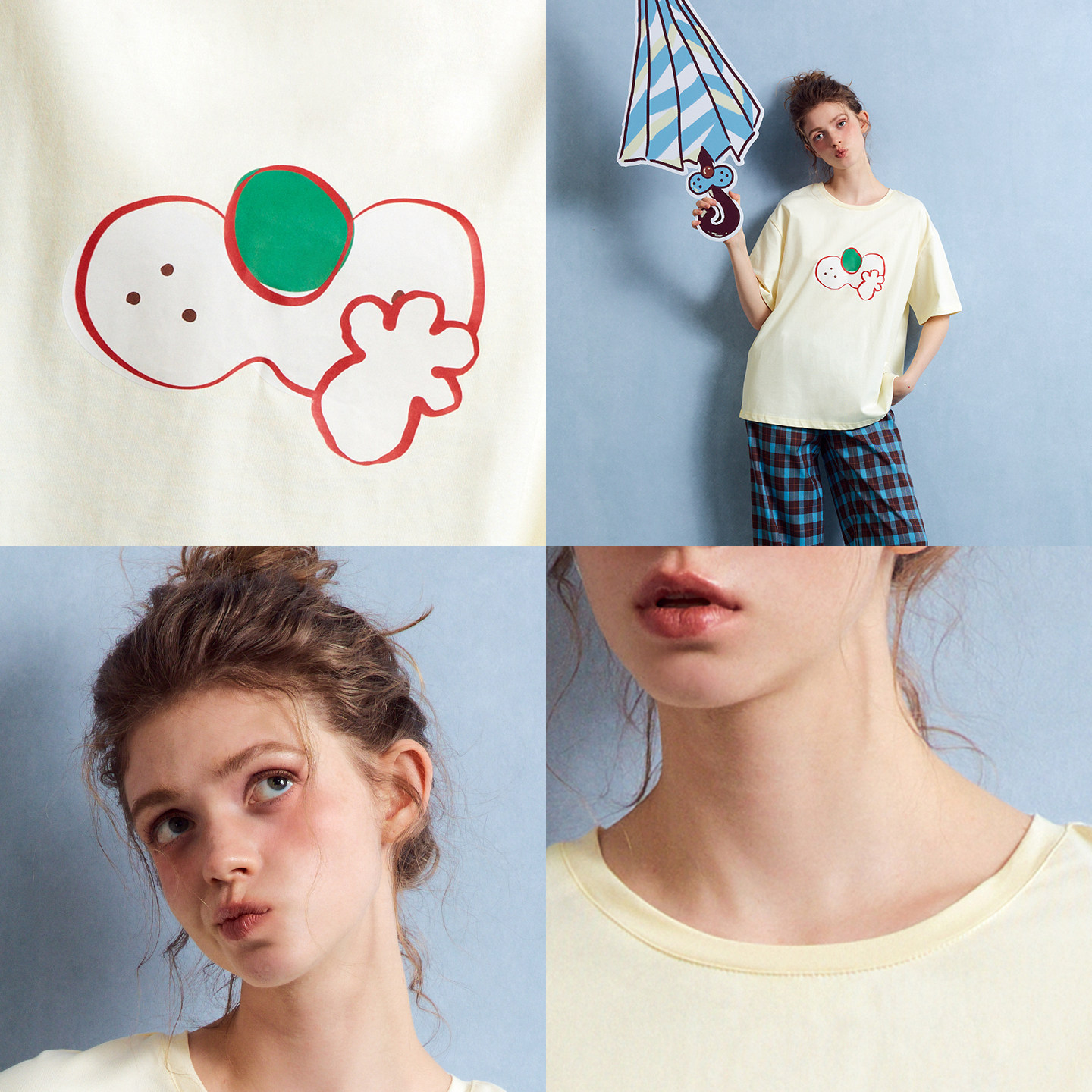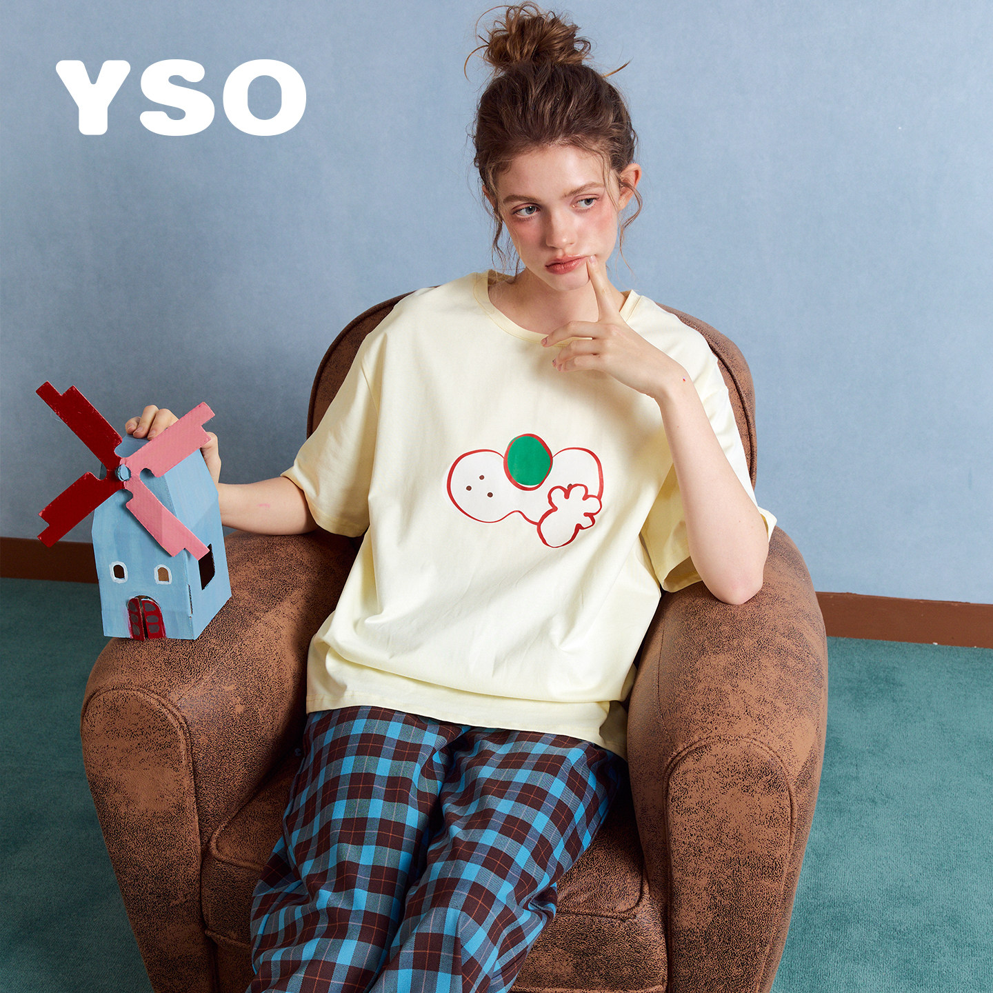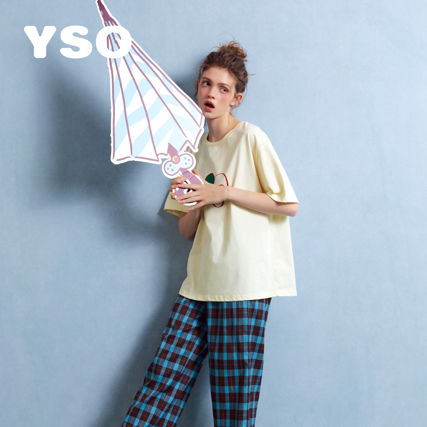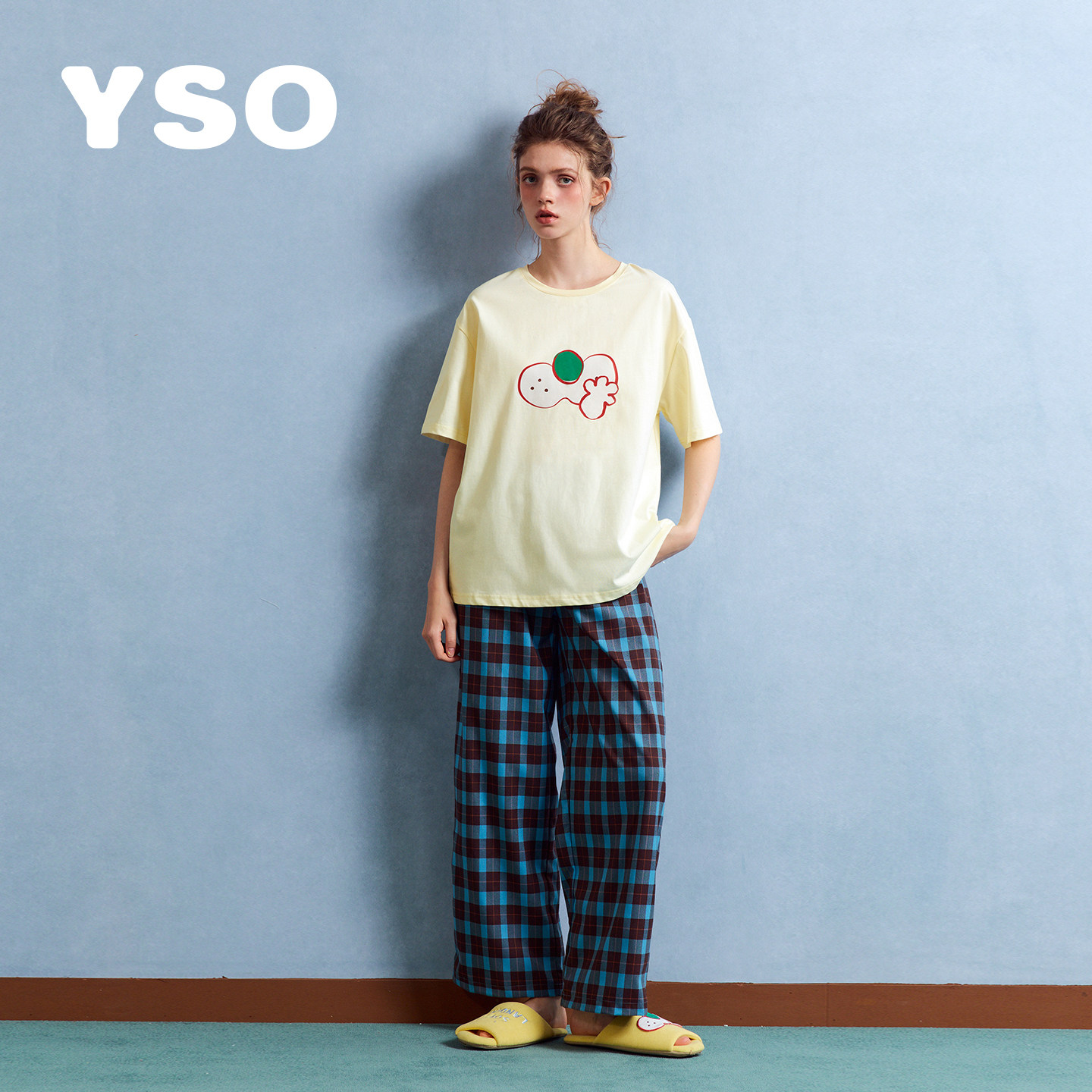 yso【酷猫系列】睡衣女春夏新款全棉卡通学生可外穿家居服套装B