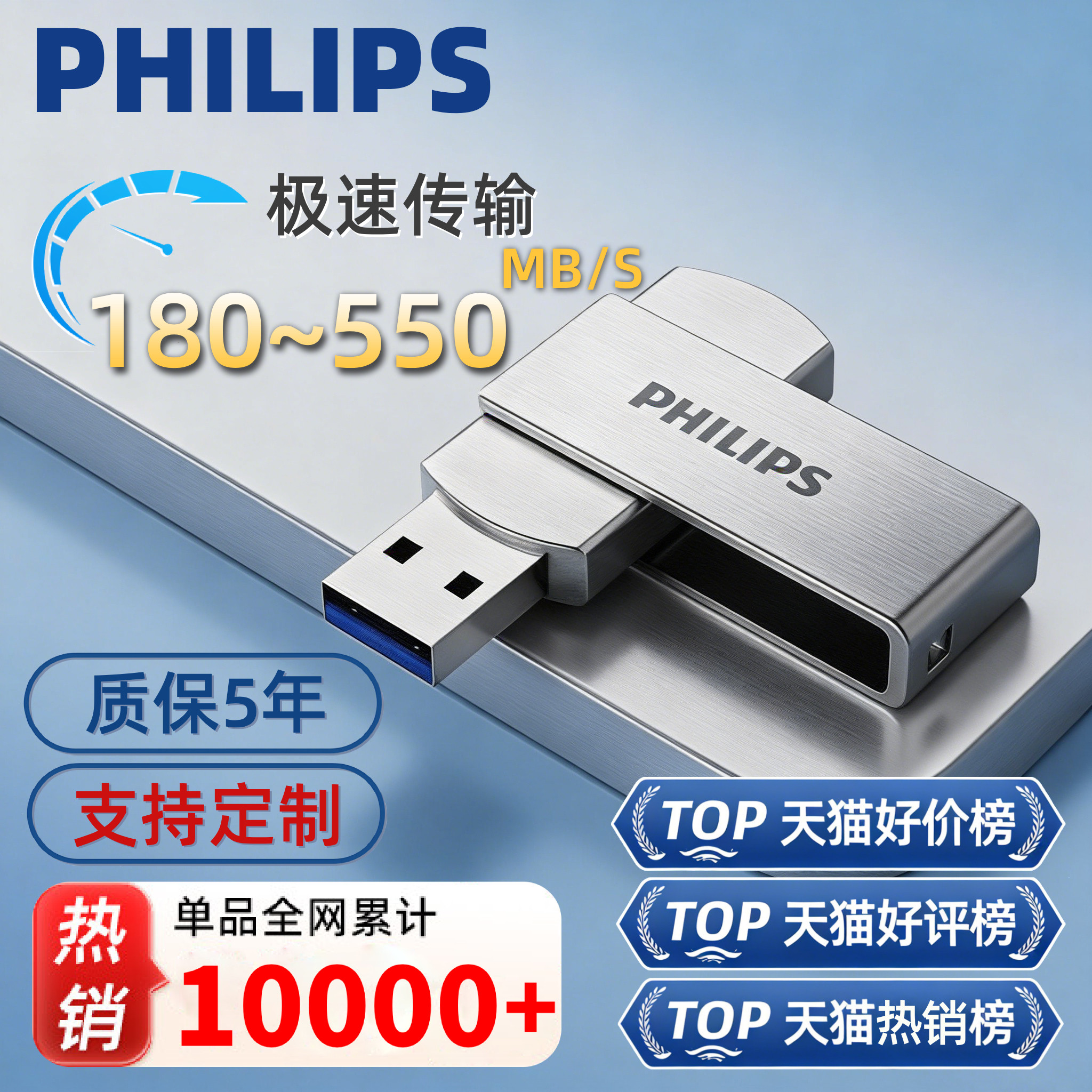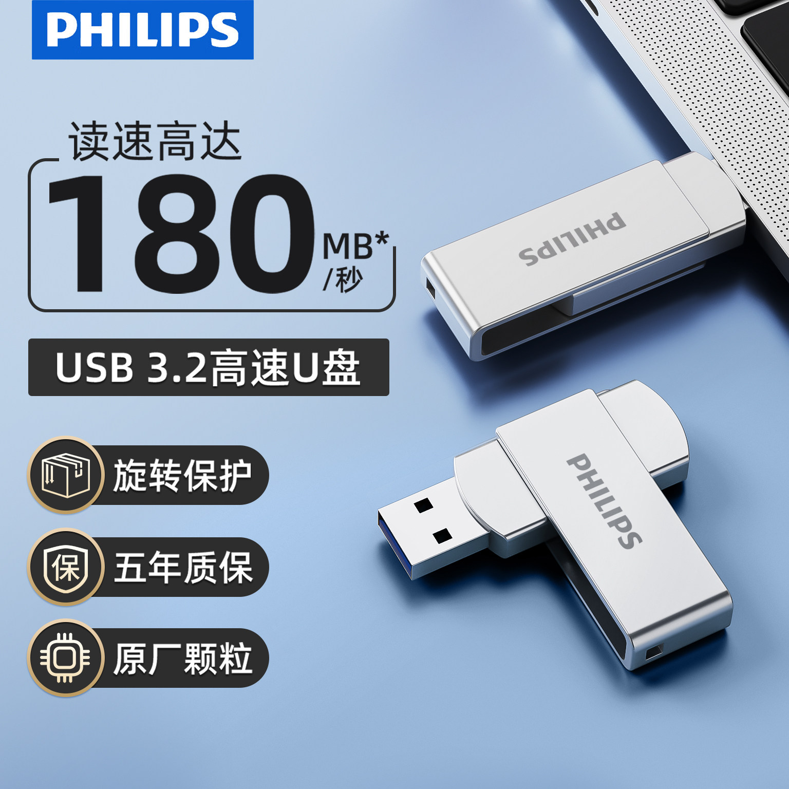 飞利浦128g金属旋转u盘大容量