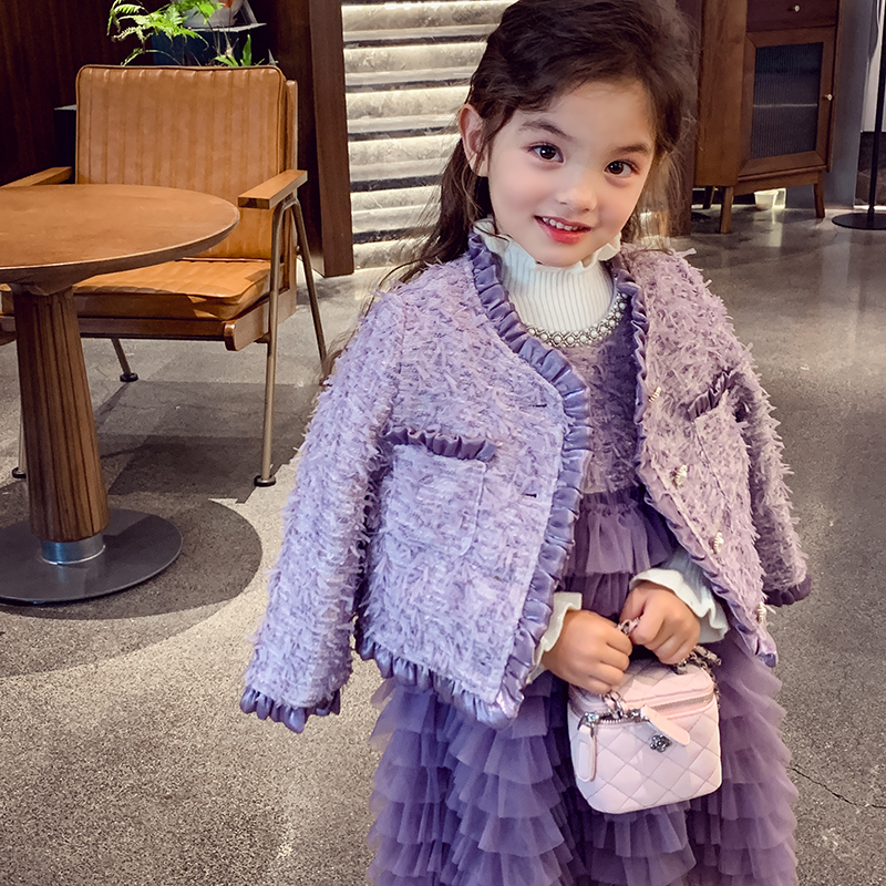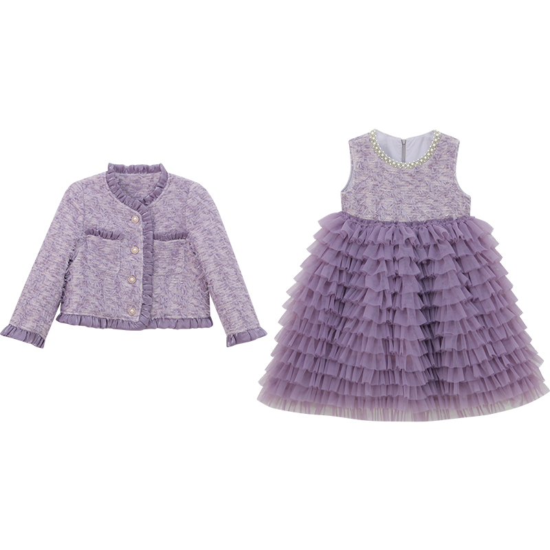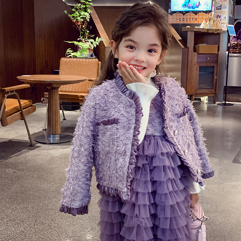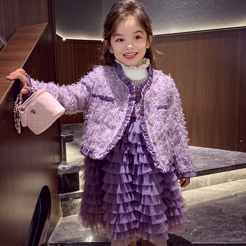 女童小香风套装裙冬装2025新款气质夹棉短款外套小女孩背心蛋糕裙