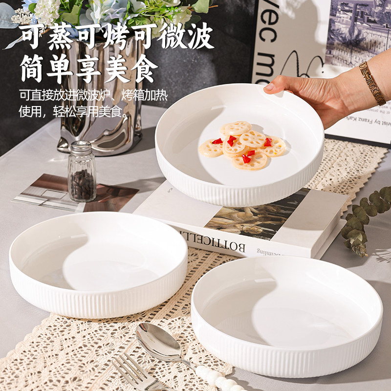 纯白深盘陶瓷餐具套装2025新款家用盘子釉下彩碟子碗碟餐具窝餐盘
